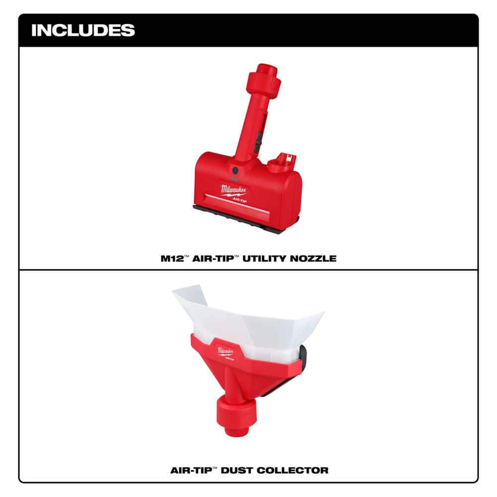 Milwaukee AIR-TIP 1-1/4 in. to 2-1/2 in. Dust Collector + M12 AIR-TIP Wet/Dry Shop Vacuum Utility Nozzle Attachments