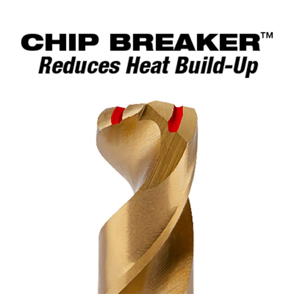 Durable Titanium Twist Bits: RED HELIX geometry and thicker web increase strength and bit life.