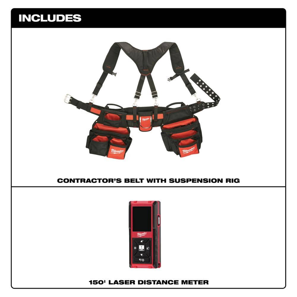 Milwaukee Contractor Work Belt with Rig and 150 ft. Laser Meter