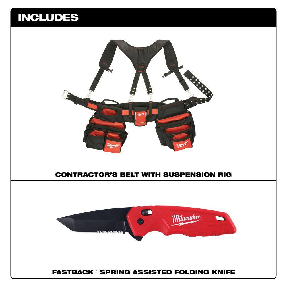 Milwaukee Contractor Work Belt with Suspension Rig and FASTBACK Spring-Assisted Knife, 24 Pockets (48-22-8120 & 48-22-1530)