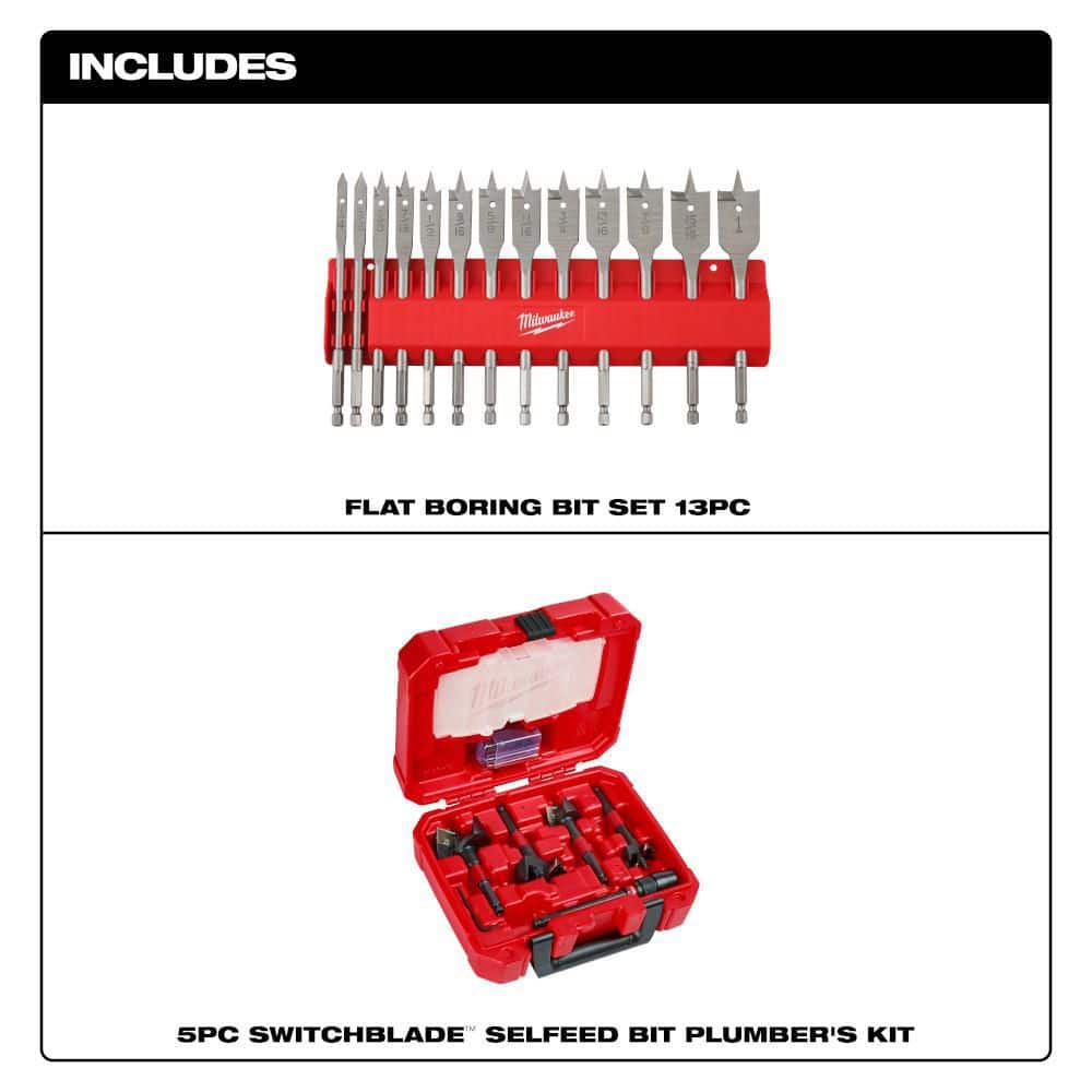 Milwaukee 18‑Piece Spade & SWITCHBLADE Selfeed Bit Set
