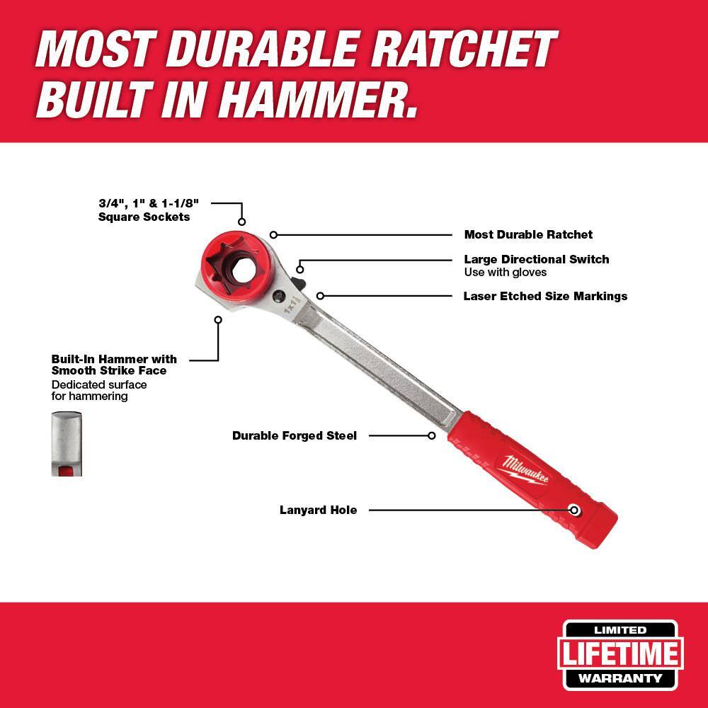High-Leverage Performance: Built-in hammer with smooth strike face and most durable ratchet speeds heavy-duty utility work.