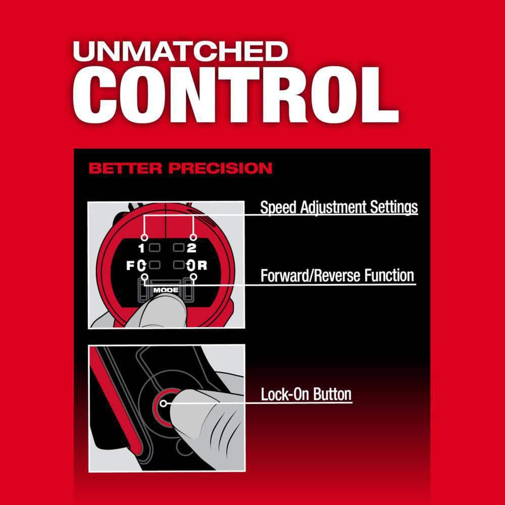 Precision Control: Two speed settings, variable speed trigger, and forward/reverse for tight access work