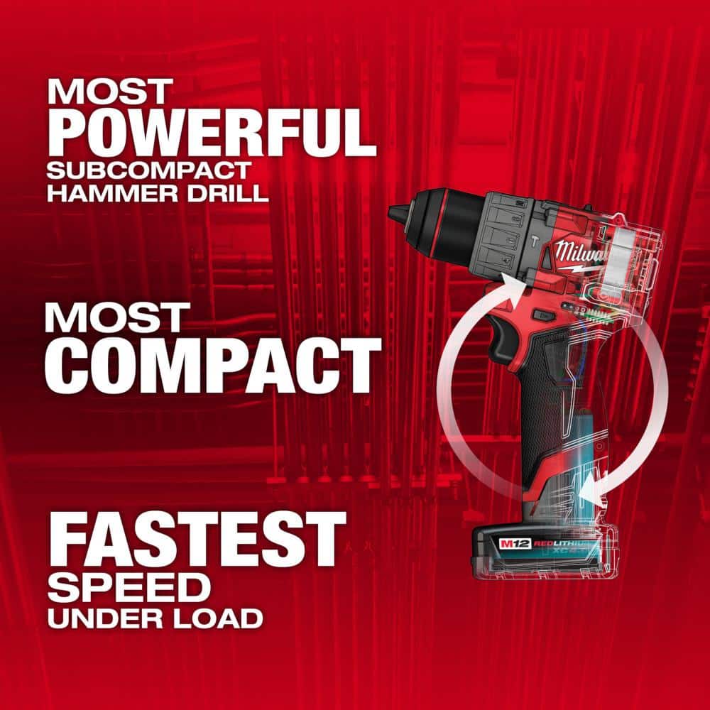 Unleash peak efficiency and portability with the Milwaukee M12 FUEL 12V Hammer Drill Kit, enhanced by a compact design and powerful brushless motor. This kit, which includes an M12 Soldering Iron, provides exceptional speed and durability for demanding applications, ideal for both professional contractors and dedicated DIYers.