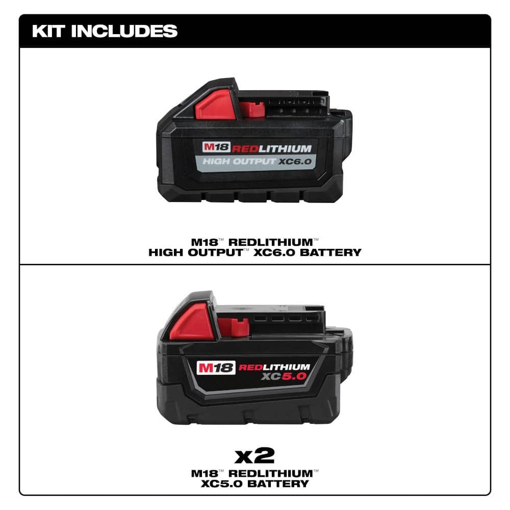 Q: How long does it take to charge these batteries? A: The typical charge time for the high-output 6.0Ah battery is around 115 minutes when using a compatible Milwaukee charger.