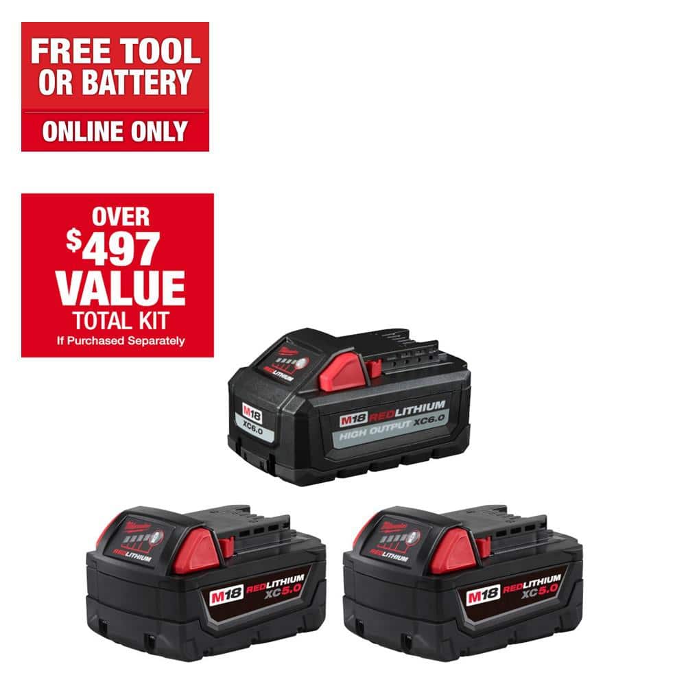 Unlock the full potential of your cordless tools with the Milwaukee M18 18-Volt Lithium-Ion Battery 3-Pack. Featuring one high-output 6.0Ah battery and two extended-capacity 5.0Ah batteries, this set provides industry-leading power, longevity, and performance across a wide range of applications and weather conditions.