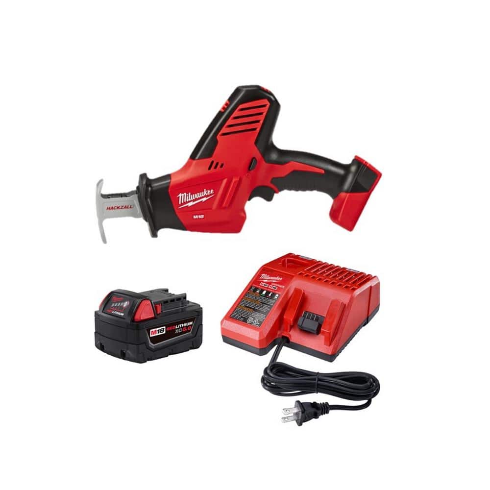 Compact, one-handed Milwaukee M18 HACKZALL delivers up to 3,000 SPM with a 3/4 in. stroke for fast cuts in wood, metal, and PVC. The kit includes a REDLITHIUM XC 5.0Ah battery and M18/M12 multi-voltage charger for extended runtime and easy charging.