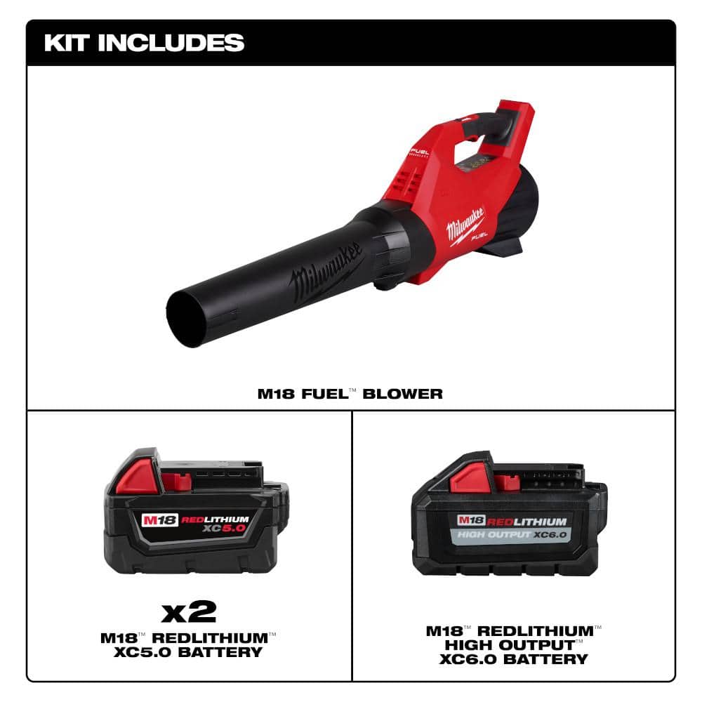 Milwaukee M18 FUEL 18V 120 MPH 500 CFM Brushless Cordless Leaf Blower w/ (1) M18 High Output 6.0Ah Battery & (2) 5.0Ah Batteries