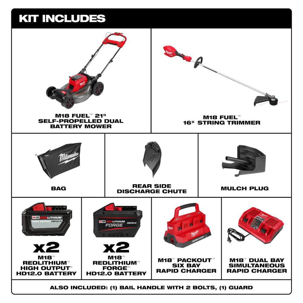 Milwaukee M18 FUEL 18V 21 in. Brushless Cordless Dual-Battery Self-Propelled Mower with 16 in. String Trimmer, (3) Batteries & Charger
