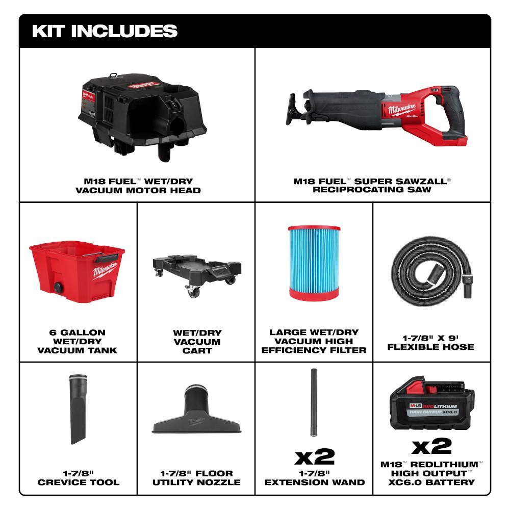 M18 FUEL Super SAWZALL Kit with Wet/Dry Vac & (2) 6.0Ah Batteries