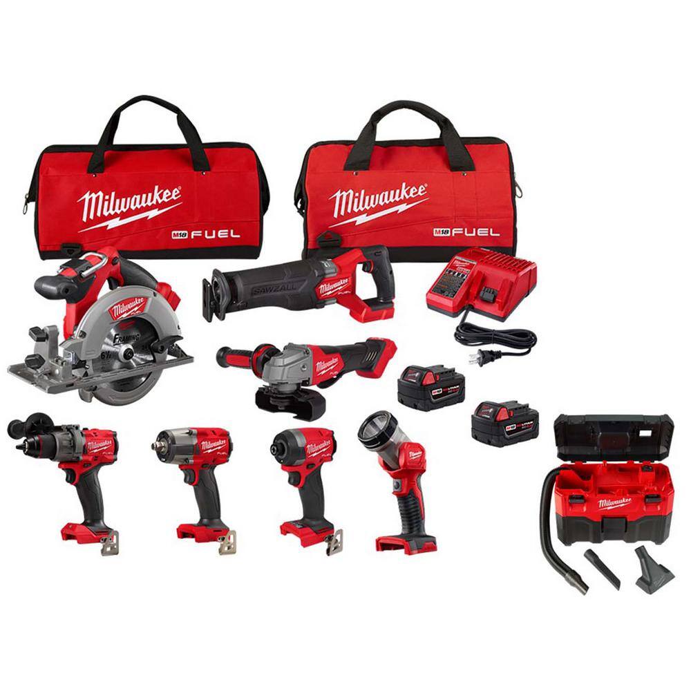 This Milwaukee M18 FUEL combo pairs seven brushless 18V tools with a compact 2‑gallon wet/dry vacuum for a complete jobsite system. Powered by REDLITHIUM batteries and REDLINK PLUS intelligence, it delivers long run time, overload protection, and compatibility with the entire M18 lineup.
