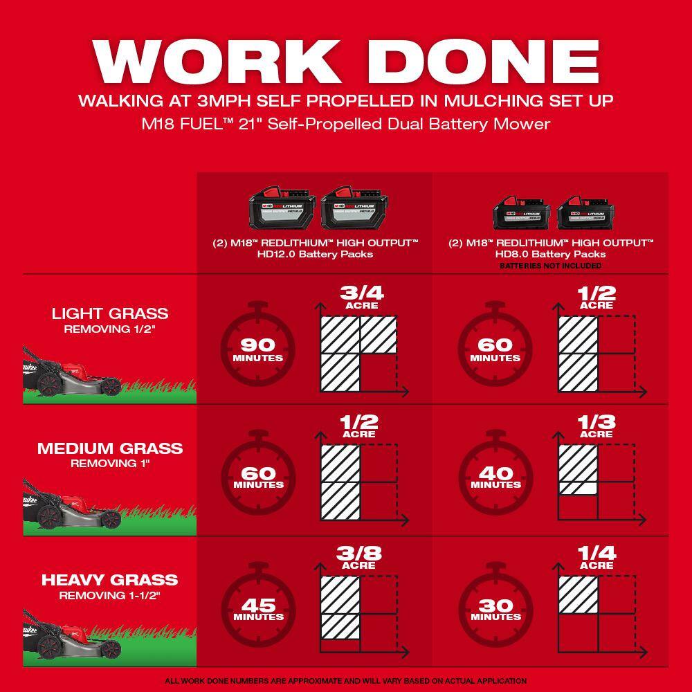 The Milwaukee M18 FUEL 21" Brushless Cordless Lawn Mower offers a powerful alternative to gas mowers, boasting more torque than 200cc engines without the hassle of fuel maintenance. This dual battery, self-propelled mower is built for demanding cutting tasks, delivering up to 60 minutes of runtime for efficient coverage of up to half an acre. It includes an 8" pruning saw for versatile garden maintenance.