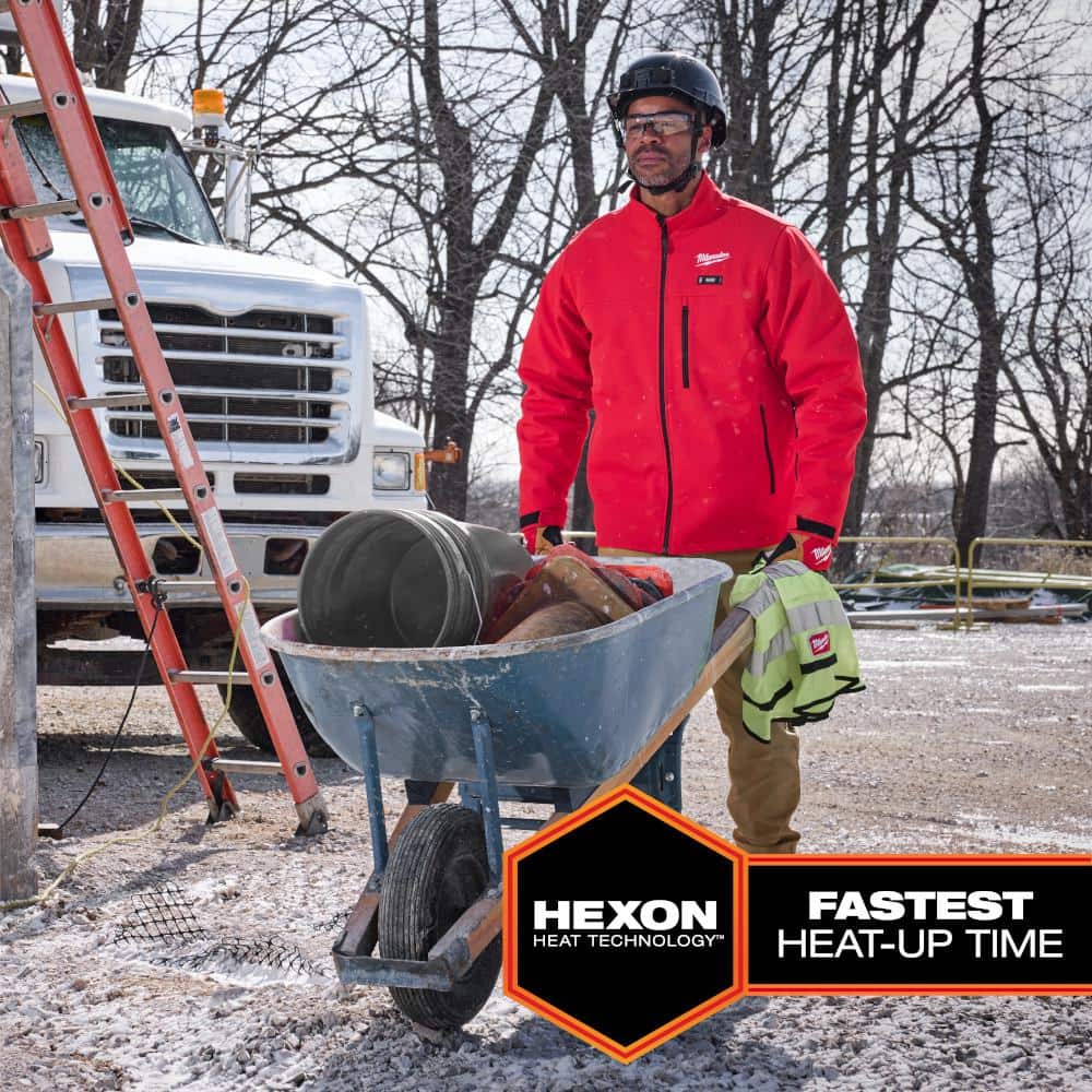 Stay warm and comfortable in even the harshest conditions with the Milwaukee M12 Heated TOUGHSHELL Jacket. Featuring HEXON HEAT TECHNOLOGY, this jacket heats up quickly, provides superior warmth, and maintains heat longer with three adjustable heat zones. Made from durable, water-resistant stretch polyester, it's built to endure tough jobsite environments while keeping you cozy.