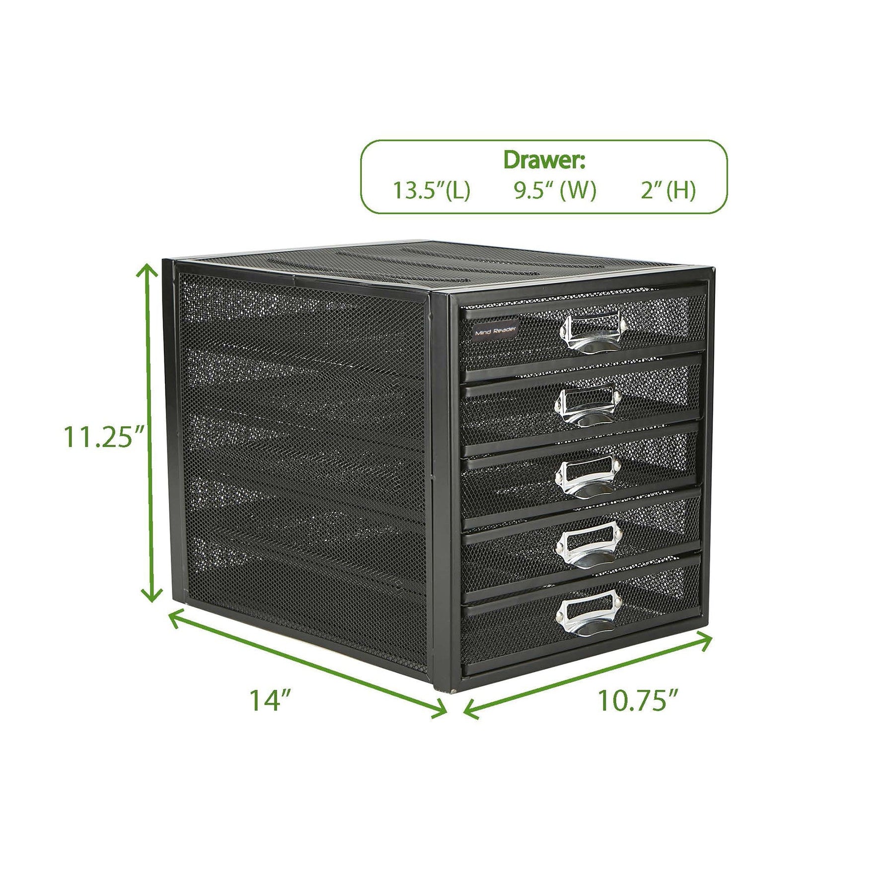Mind Reader Durable Metal Storage Drawer- 10.75-in x 14-in x 11.25-in- 5 Drawers- Scratch Resistant- Black- Full Extension Glides- Easy Access- Assembly Required