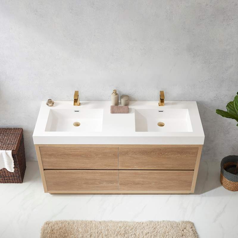 Miseno Huesca 60-in Freestanding Double Sink Bathroom Vanity, North American Oak, Stone Composite Top