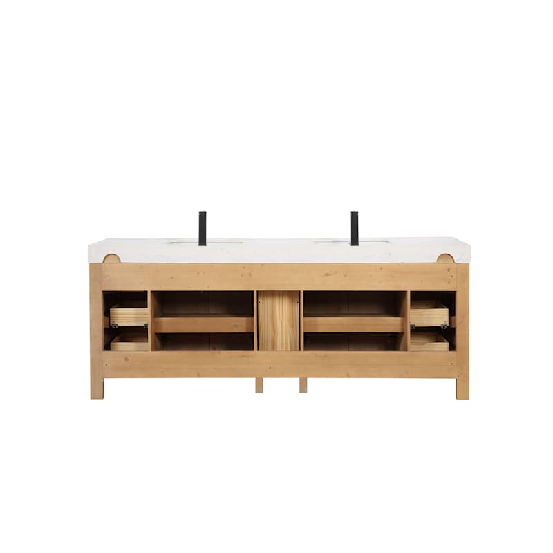 Miseno León 84-in Free-Standing Double Vanity Set with Cabinet, Stone Composite Top & Undermount Ceramic Sinks - Fir Wood Brown/Lightning White