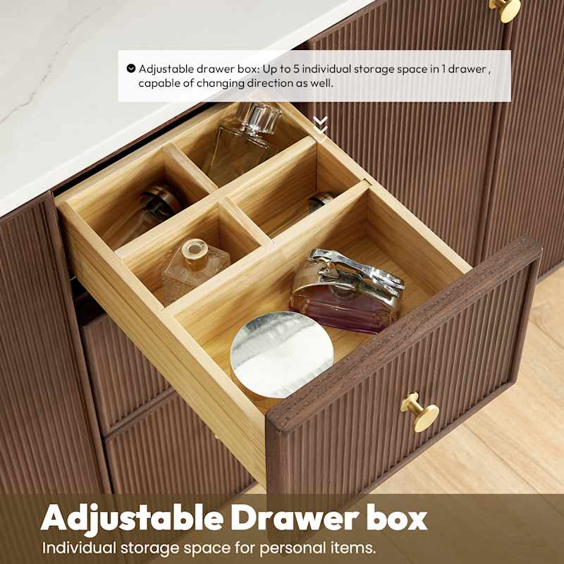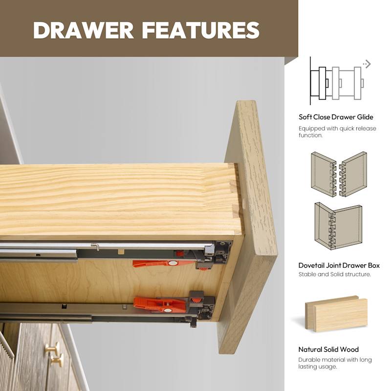 • Thoughtful Storage: 4 doors, 3 full-extension soft-close drawers (adjustable organizer) and 2 shelves for organized access