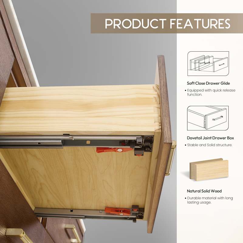 - Solid Wood Construction: Sturdy vanity base with dovetail drawer boxes for long-lasting durability
