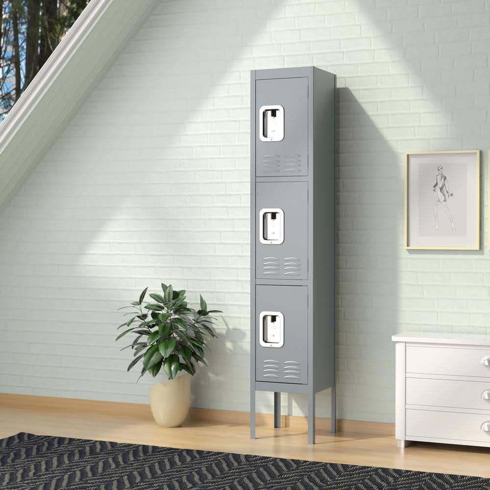 Transform the functionality and aesthetic of any space with the Mlezan 3-Tier Metal Locker, a delightful fusion of industrial chic and practicality. Its robust steel construction and sleek gray hue present a sophisticated yet sturdy storage option that transcends typical locker offerings. Envision this piece enhancing an office supply room or introducing efficient elegance to a creative workspace, neatly housing resources without compromising style. Truly, this locker stands as an essential for orderly, luxurious living.