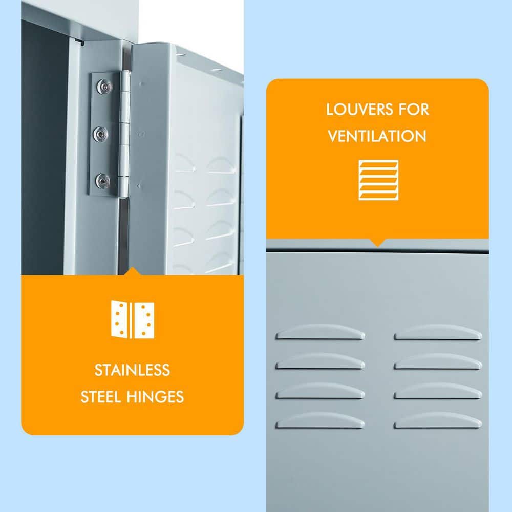Maximize your organization with the Mlezan 4-Tier Metal Locker, featuring a durable steel construction and a sleek gray finish. Perfect for schools, gyms, and workplaces, this locker offers secure storage with its steel hasp assembly compatible with various locks. Enjoy ample space for personal items from books to athletic gear, presented in a practical, easy-to-assemble design.
