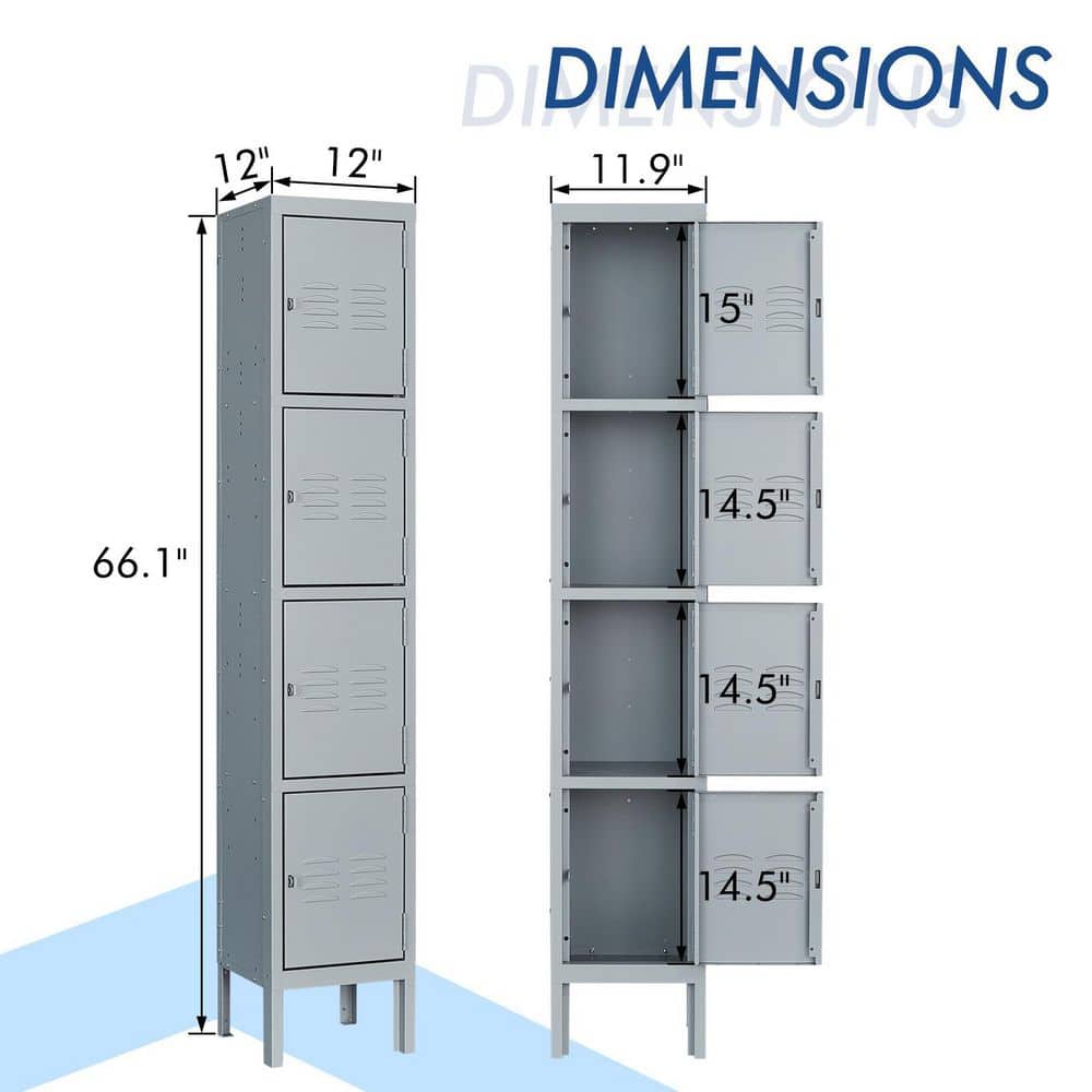 Mlezan 4-Tier Metal Locker 4 Doors Storage Shelves Locker 12 in. D x 12 in. W x 66 in. H in Gray for Employees Workers Students