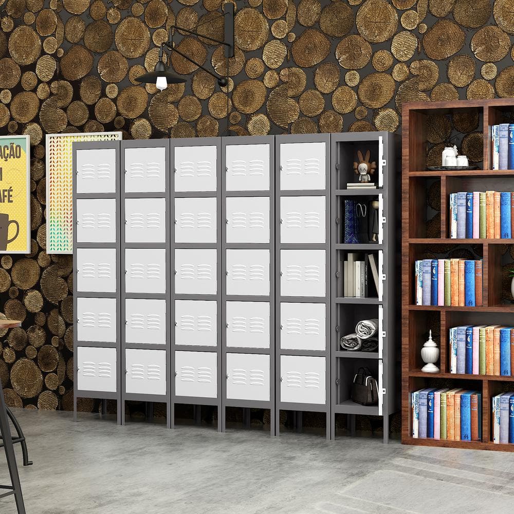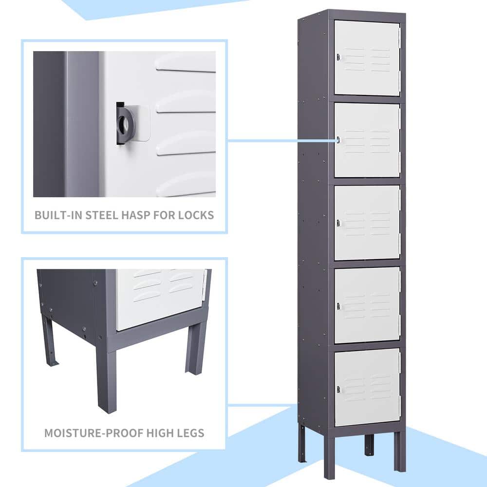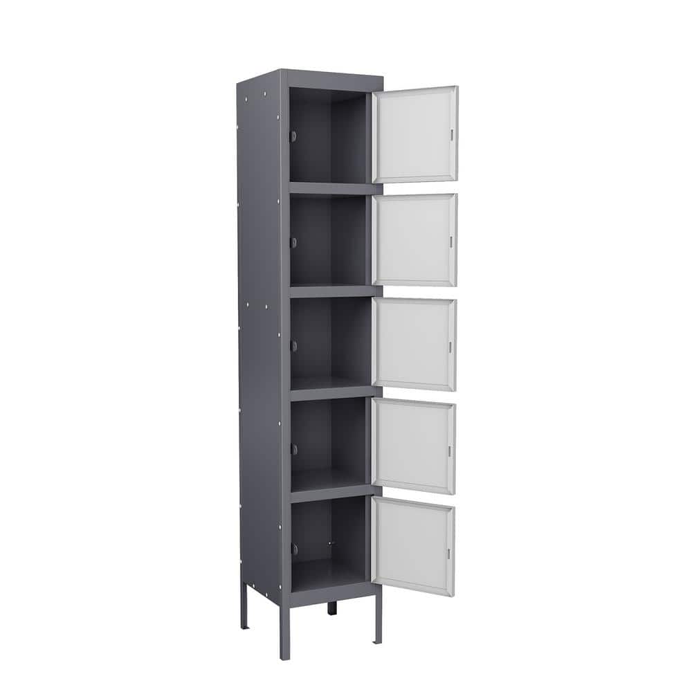 Mlezan 5-Tier Metal Locker Storage Shelves Locker 12 in. D x 12 in. W x 66 in. H in Gray White for Employees Workers