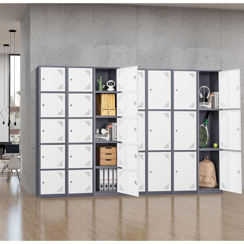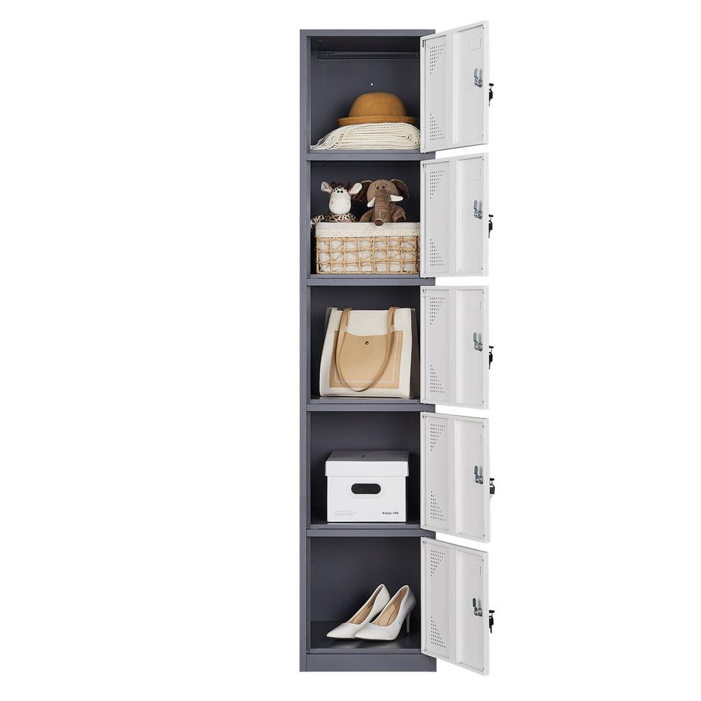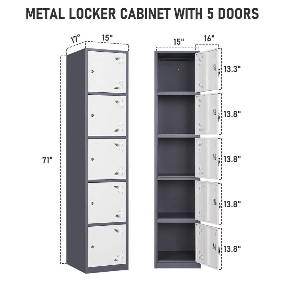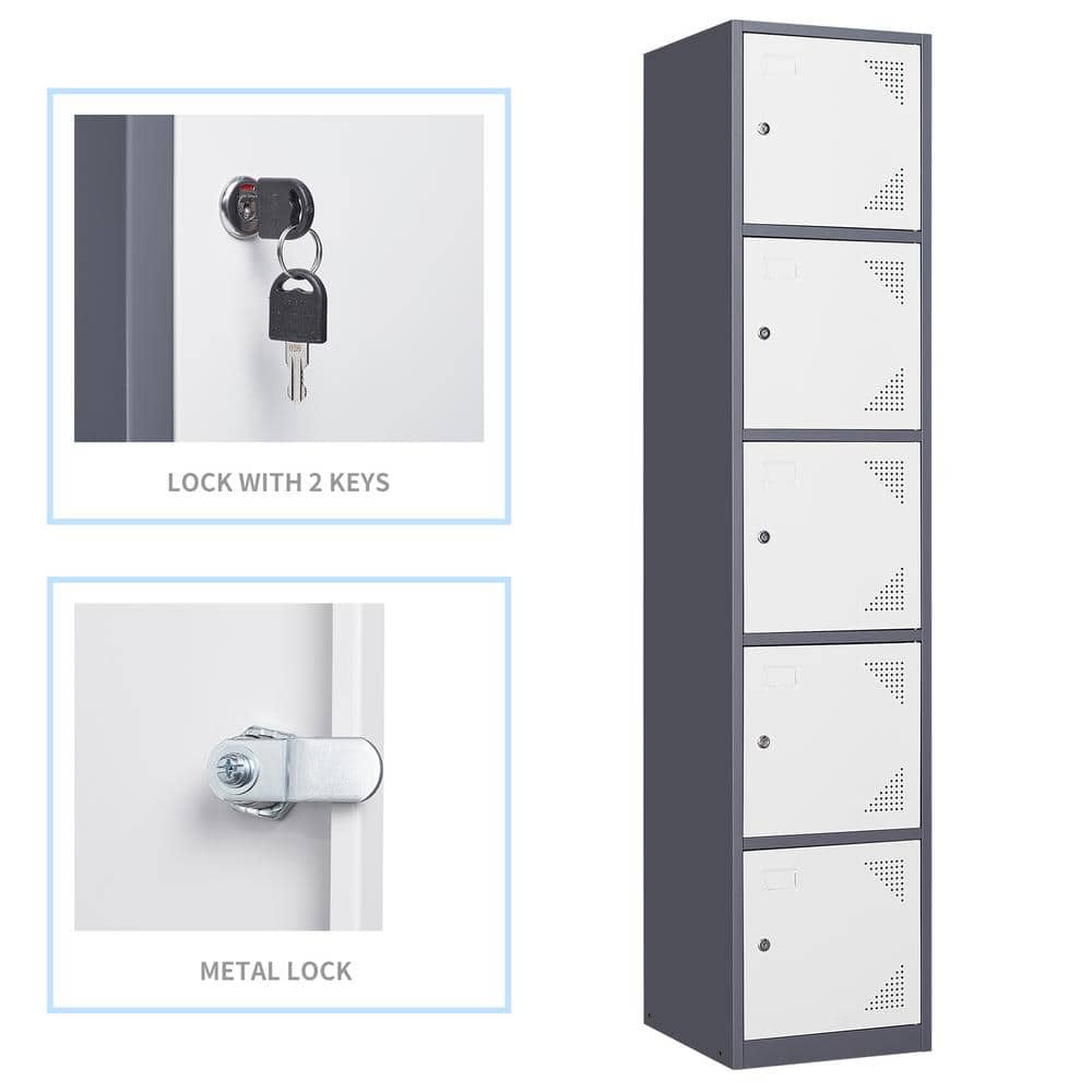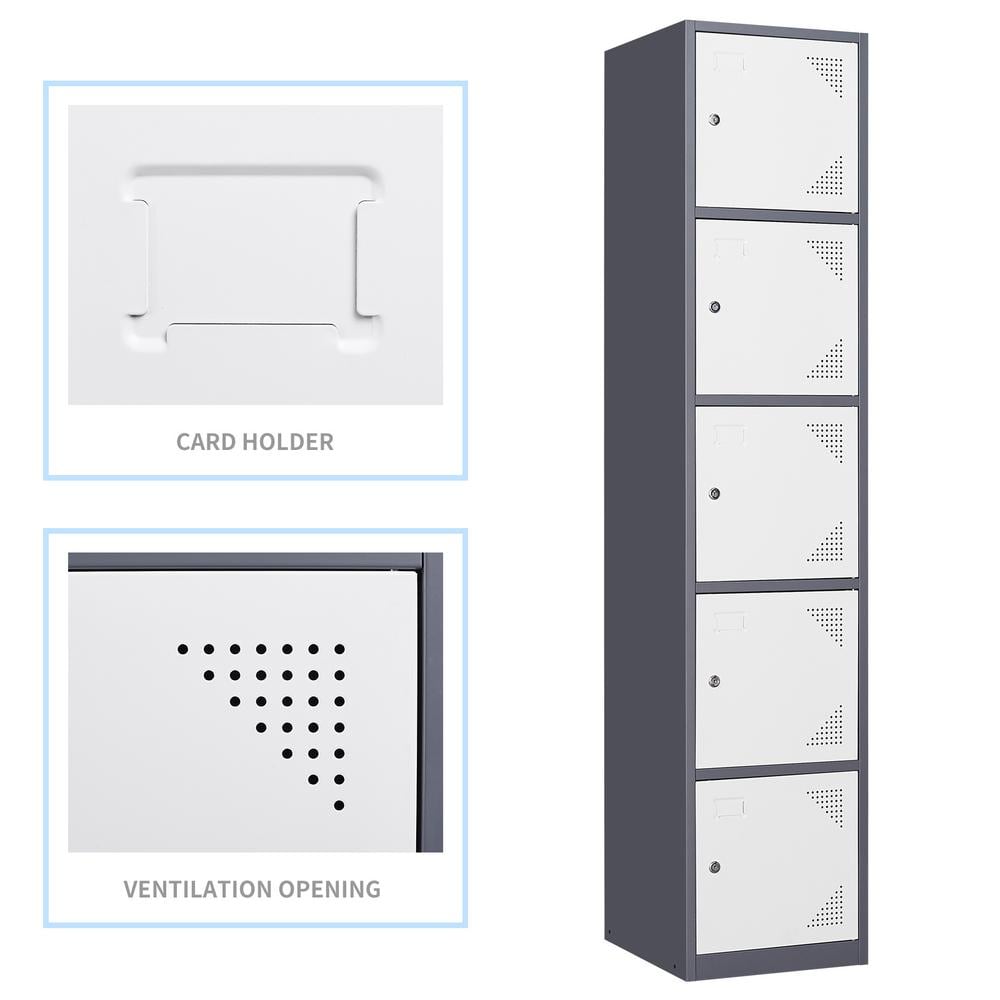 Mlezan 5-Tier Metal Locker with Keys for Employees Staff Gym 17 in. D x 15 in. W x 71 in. H in Grey White