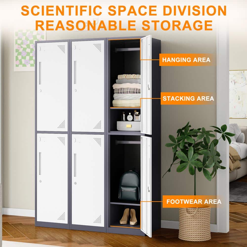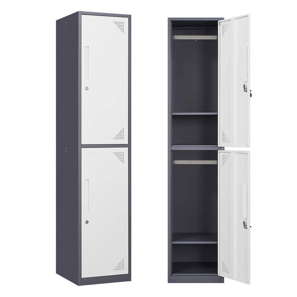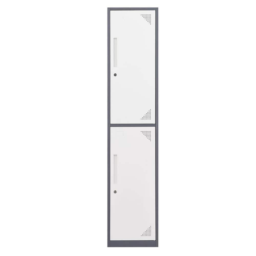 Mlezan Double Tier Metal Locker Cabinet with Doors and Keys in Grey White Storage Lockers 17 in. D x 15 in. W x 71 in. H