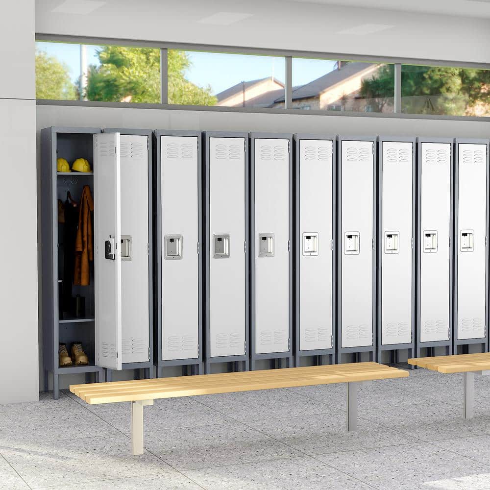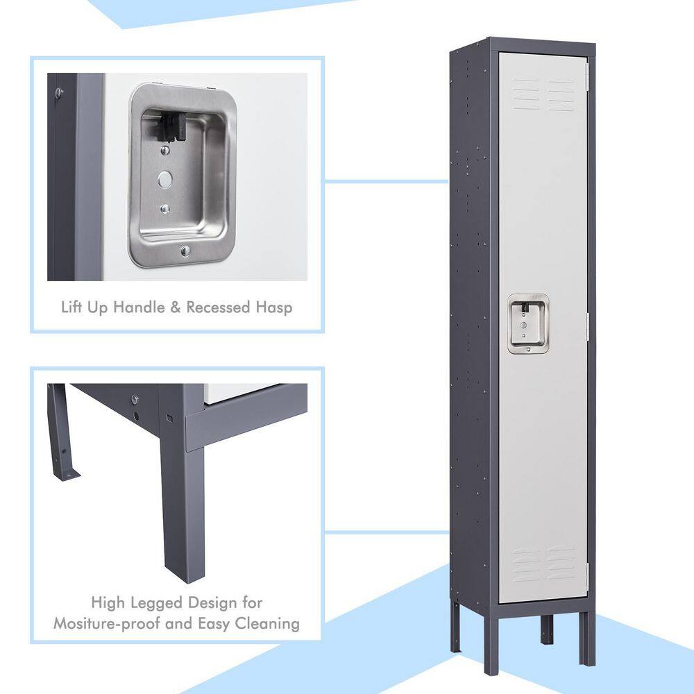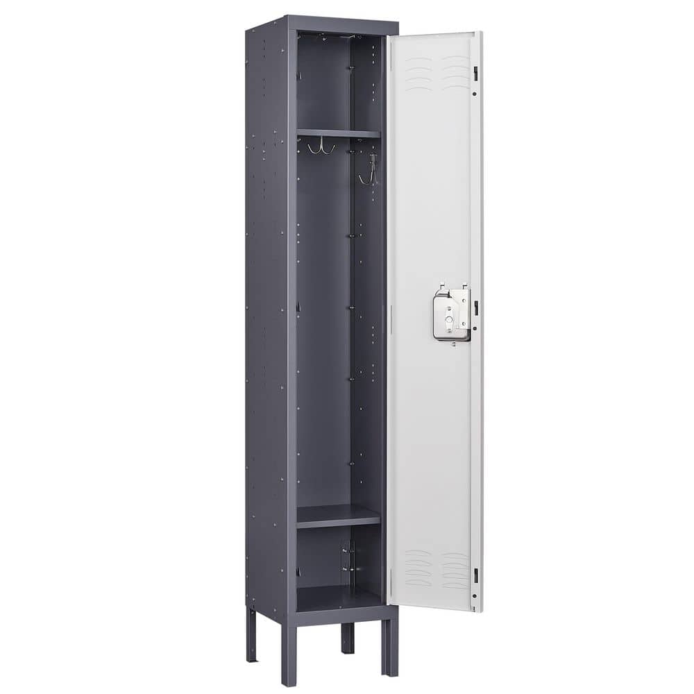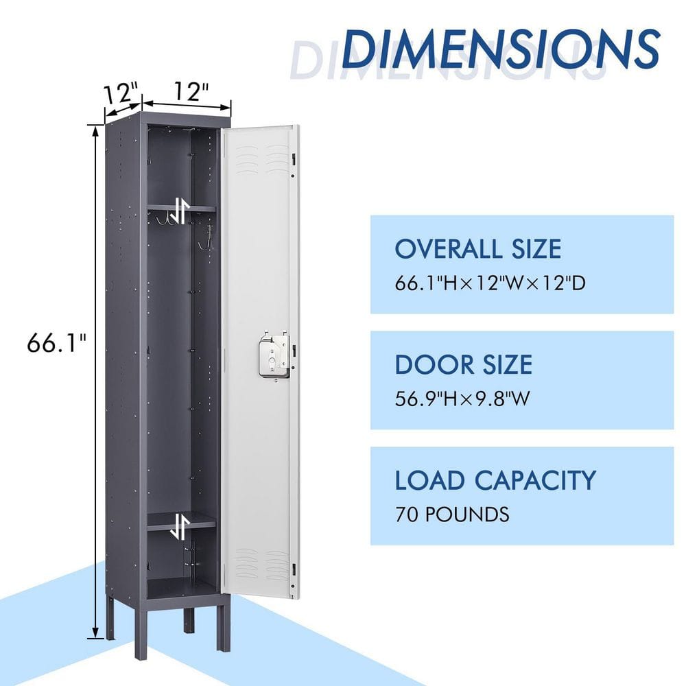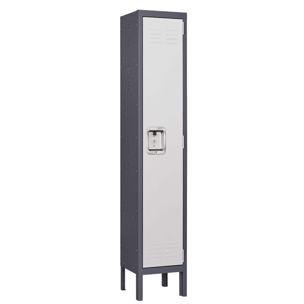 Mlezan Metal Locker Single Tier 1 Door Tall Locker 12 in. D x 12 in. W x 66 in. H in Grey White Lockers Cabinet for Home