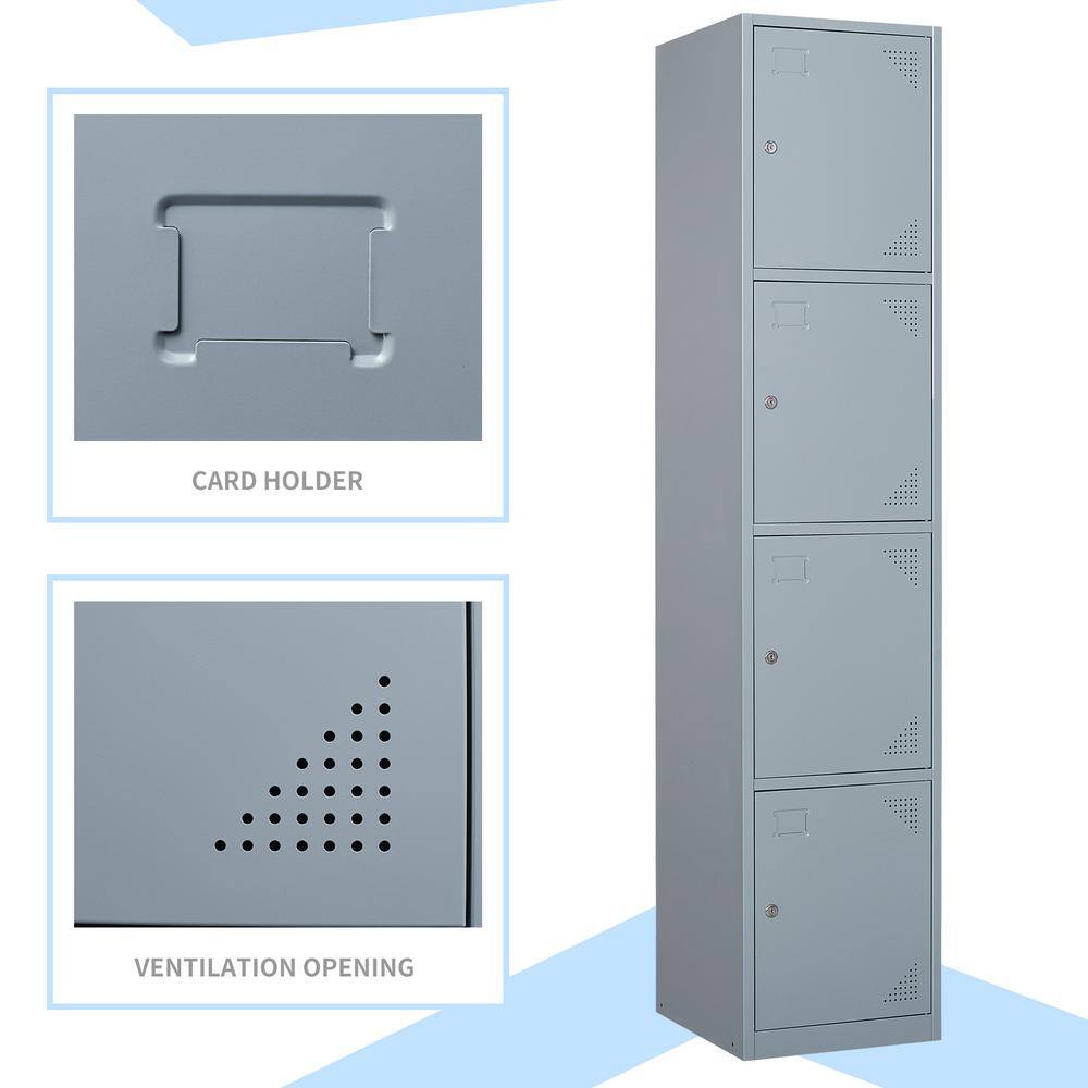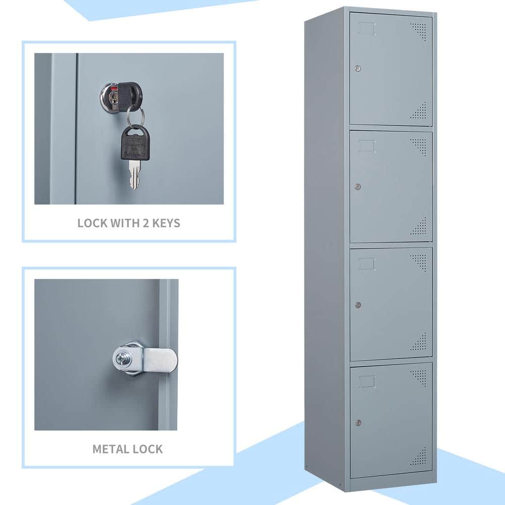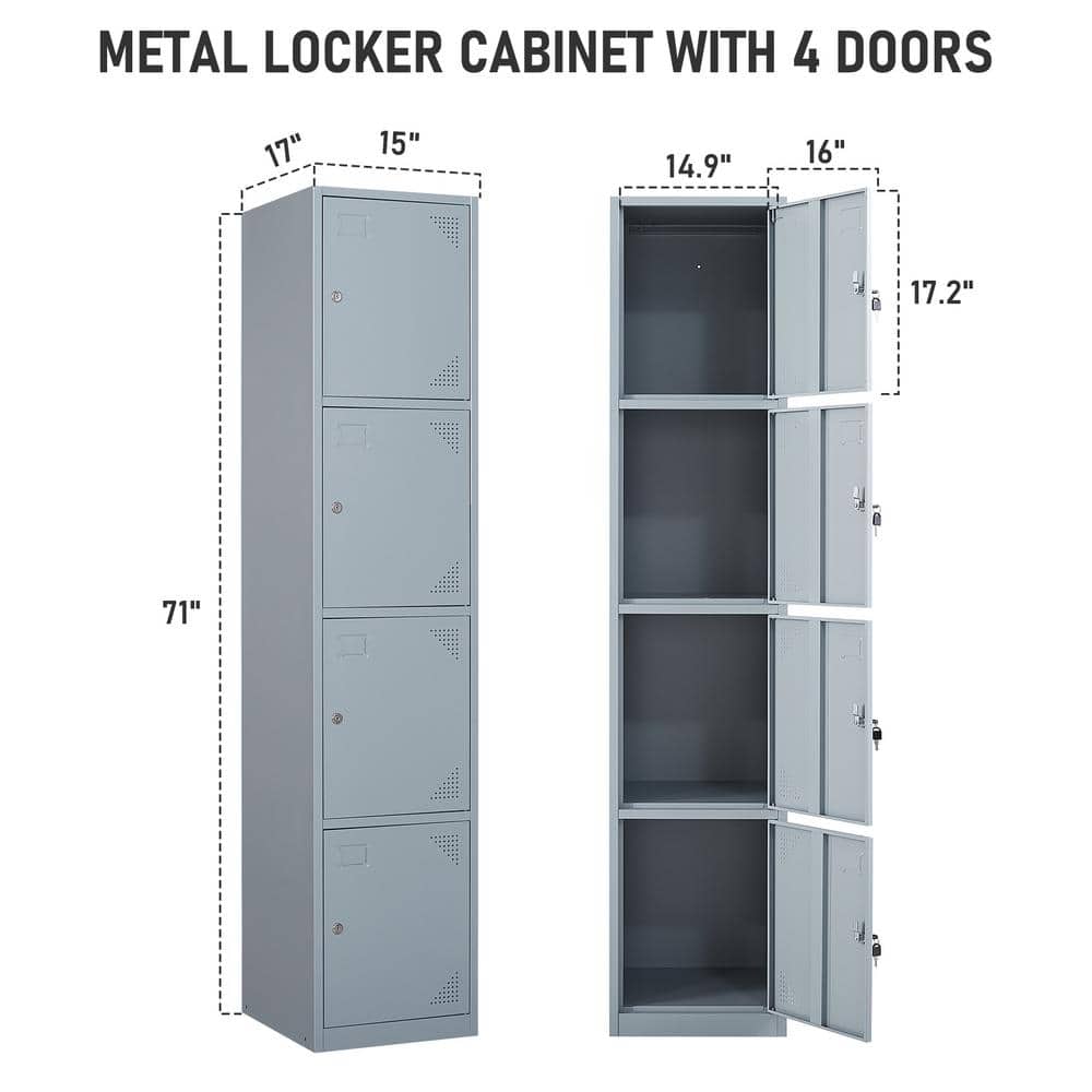 Mlezan Storage Locker 4-Doors with Keys for Employees School Gym in Gray 17 in. D x 15 in. W x 71 in. H