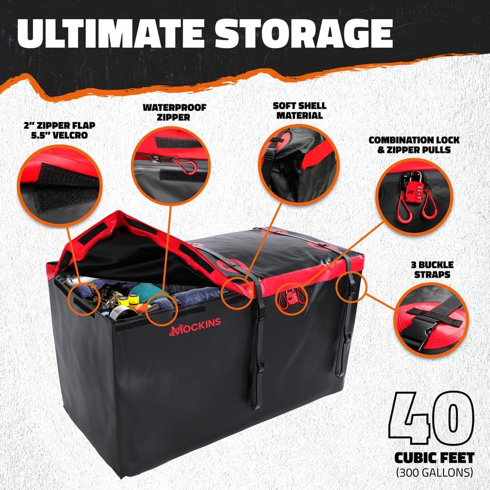 The Mockins Waterproof Hitch Cargo Bag offers a spacious 40 cu. ft. of storage in a durable, waterproof design, perfect for road trips and outdoor adventures. Made from abrasion-resistant vinyl with welded seams, this cargo bag protects your belongings from the elements. Easily secure your gear with the included lock, straps, and side handles, ensuring safety and convenience on every journey.