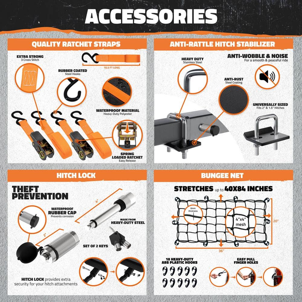 • Secure Transport: Includes hitch stabilizer and straps to minimize wobble and secure your gear.