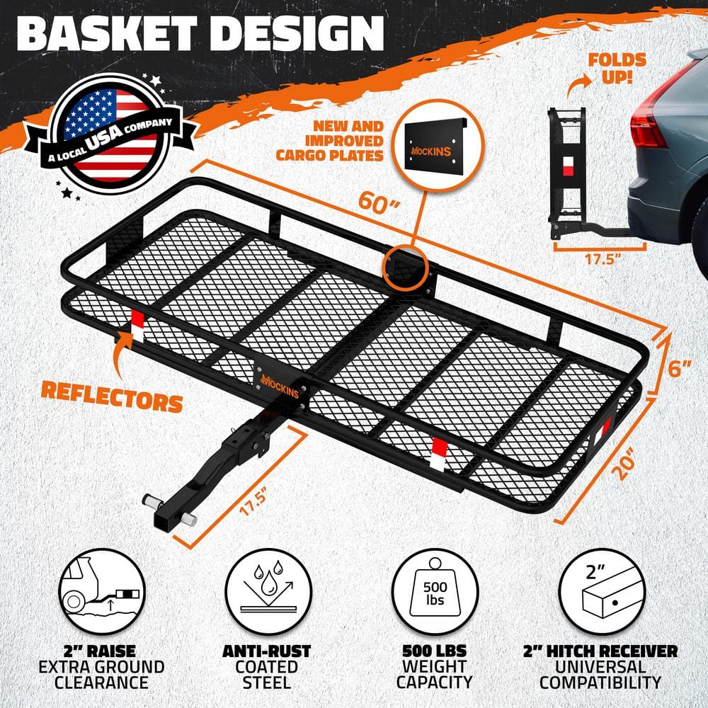 Mockins 500 lbs. Capacity Hitch Mount Cargo Carrier Basket, 16 cu. ft. Cargo Bag , Thick Straps, Foldable Shank and 2 in. Raise