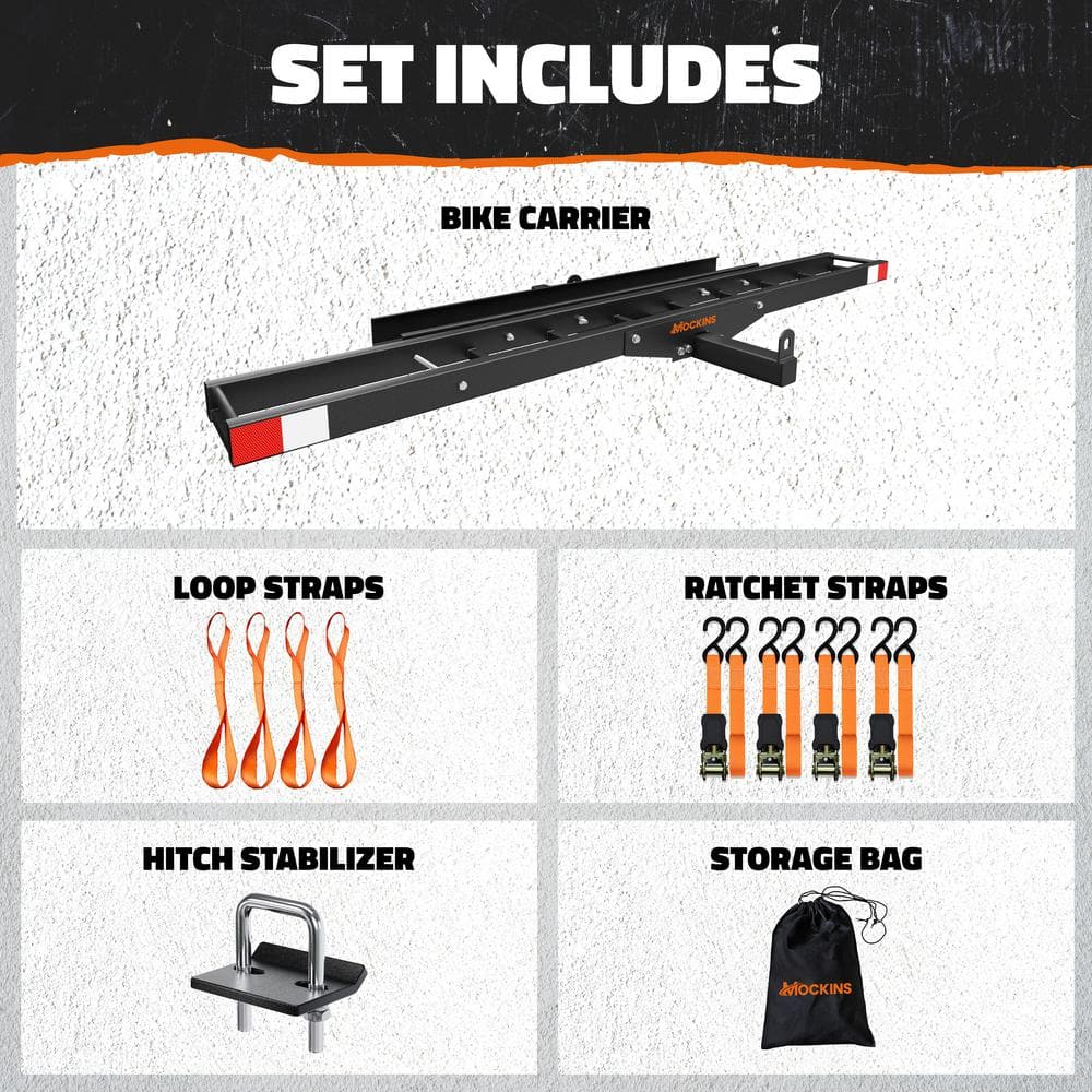 Mockins 510 lbs. Capacity Steel Hitch Mount Dirt Bike Carrier 73" Motorcycle Carrier with Loading Ramp, Straps and Stabilizer