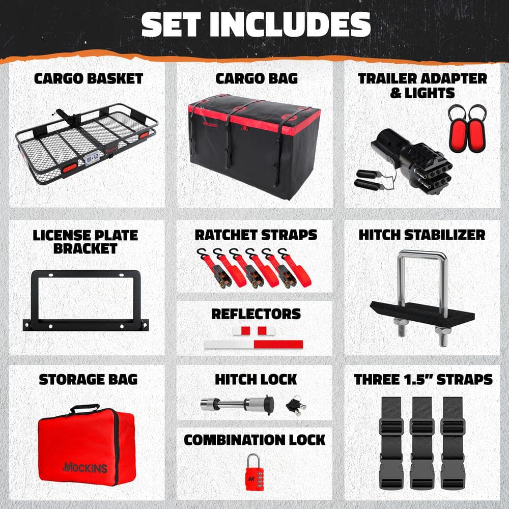 Mockins XL Hitch Cargo Carrier with Lights & Red Bag