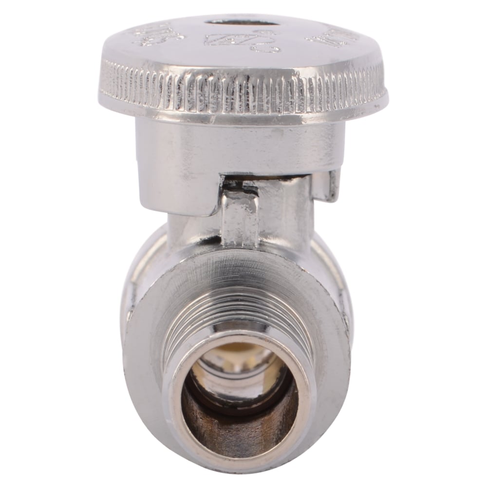 This compact, chrome stop valve adds a crisp, polished note to any utility space while delivering instant control. Its quarter-turn handle offers a satisfying, precise shut-off, and the streamlined silhouette keeps the look clean and modern. Style it with matching chrome supply lines for a cohesive finish under sinks or behind toilets. Functional beauty at its finest—an essential touch for refined, everyday living.