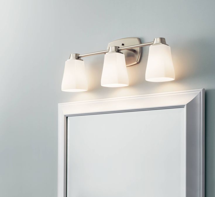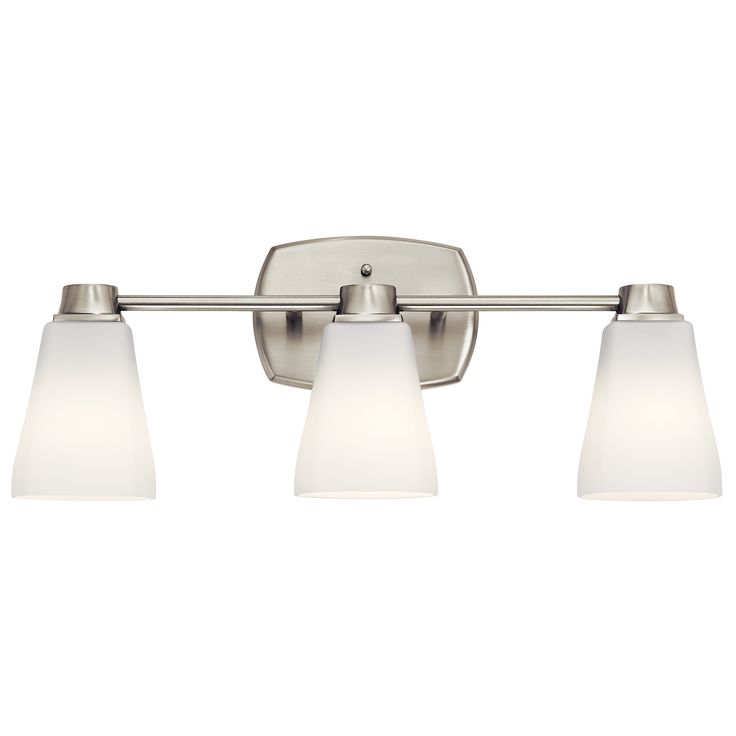 • This brushed nickel finish three light vanity is part of the Sandover collection