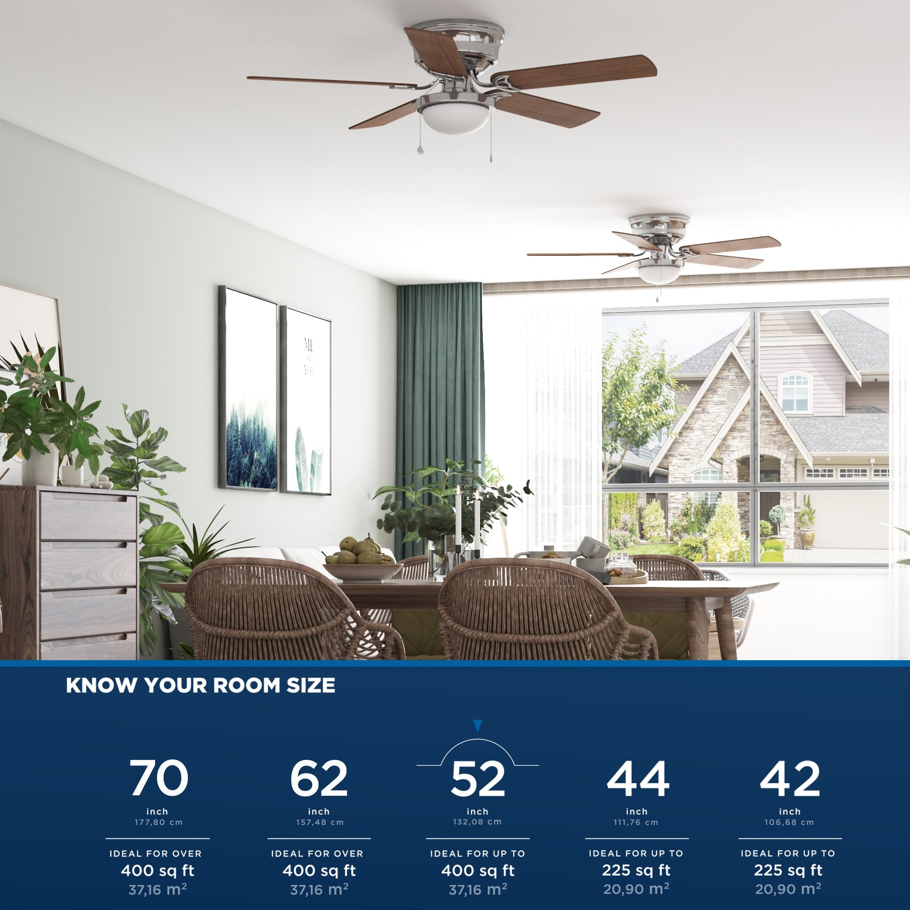 Harbor Breeze Armitage 52-in Brushed Nickel LED Indoor Flush Mount Ceiling Fan with Light Kit, 5-Blade