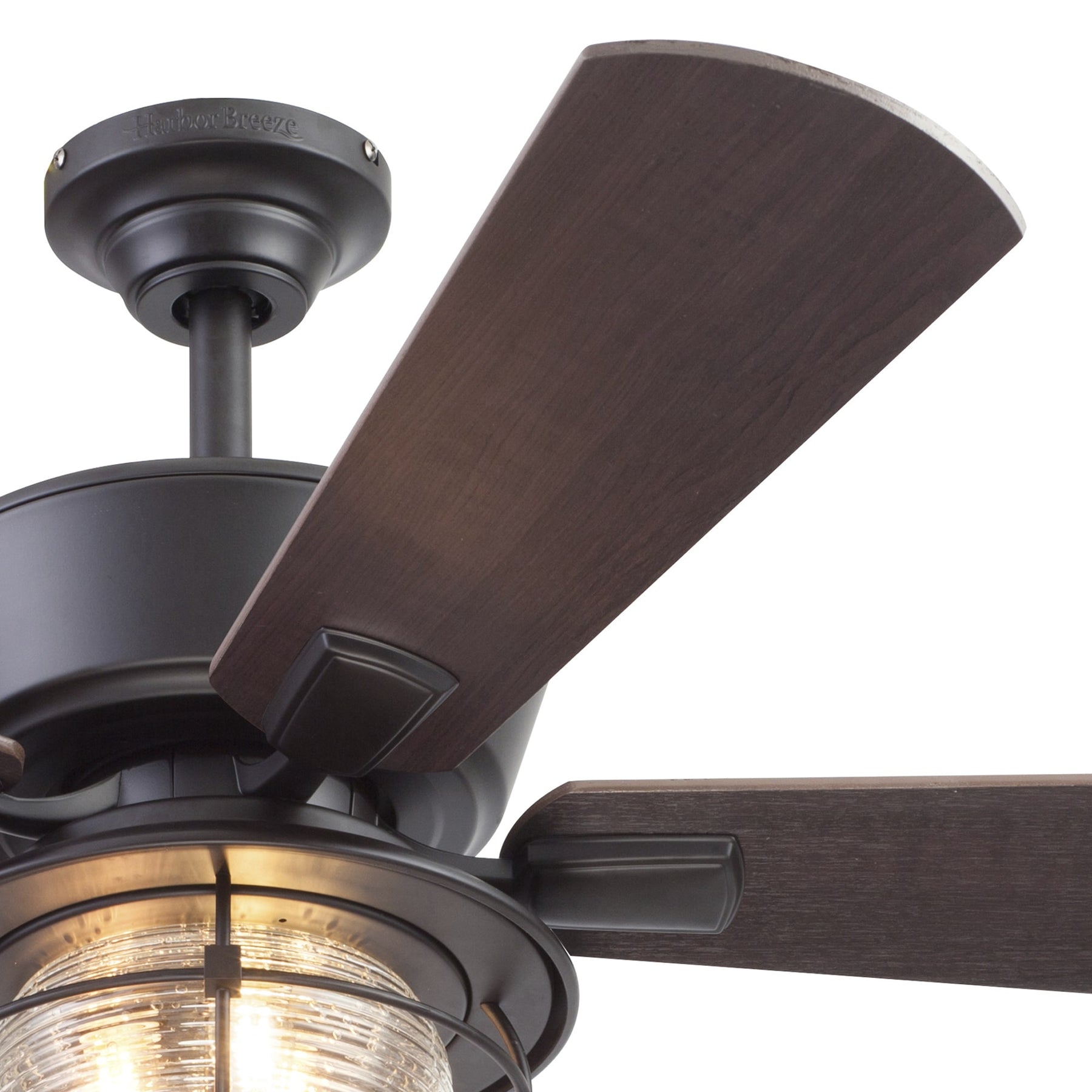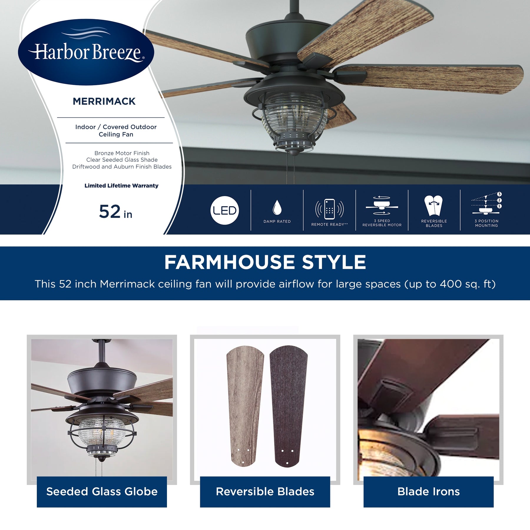 Harbor Breeze Merrimack II 52-in Matte Bronze LED Indoor/Outdoor Ceiling Fan with Light Kit, 5-Blade