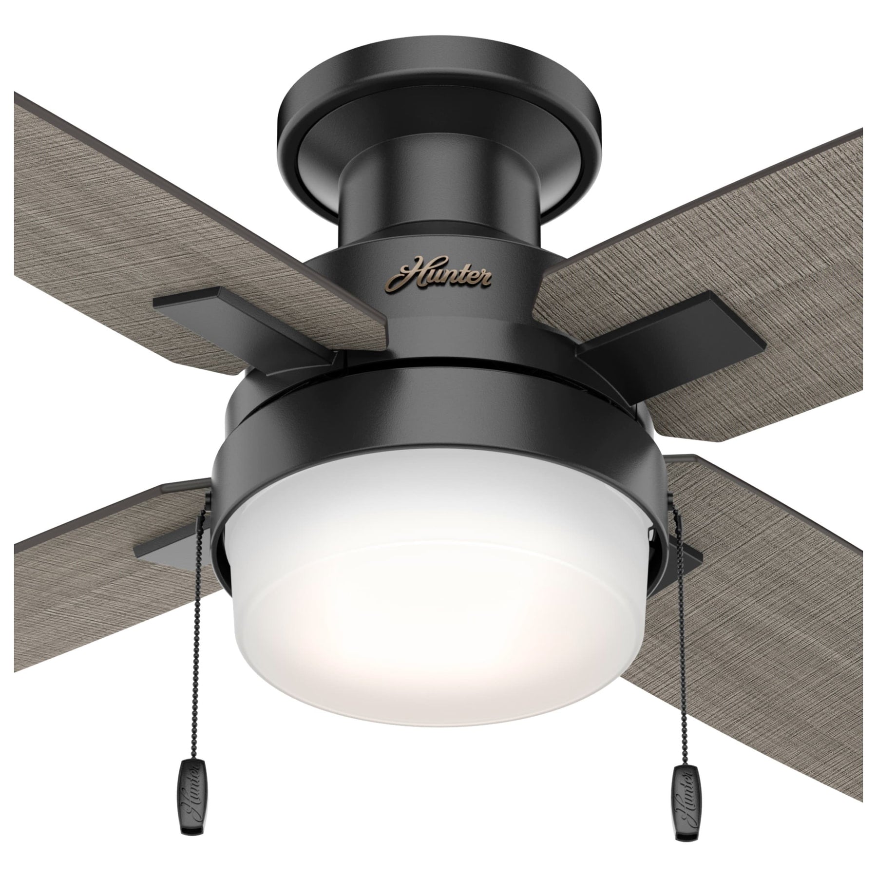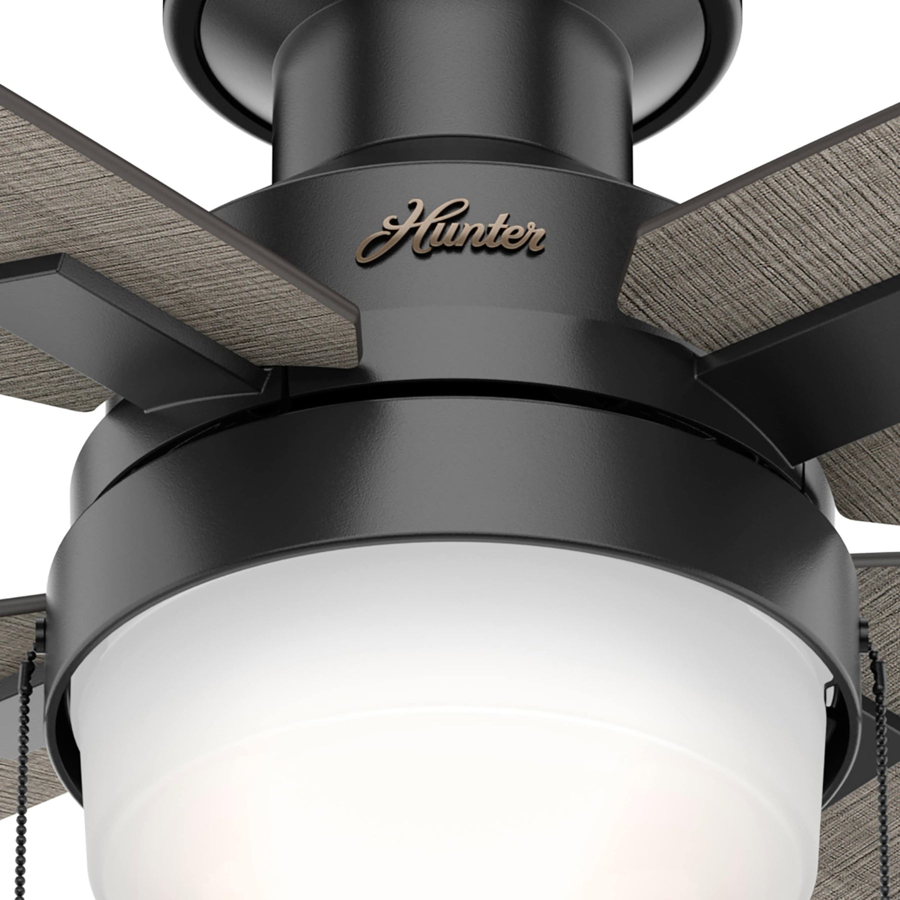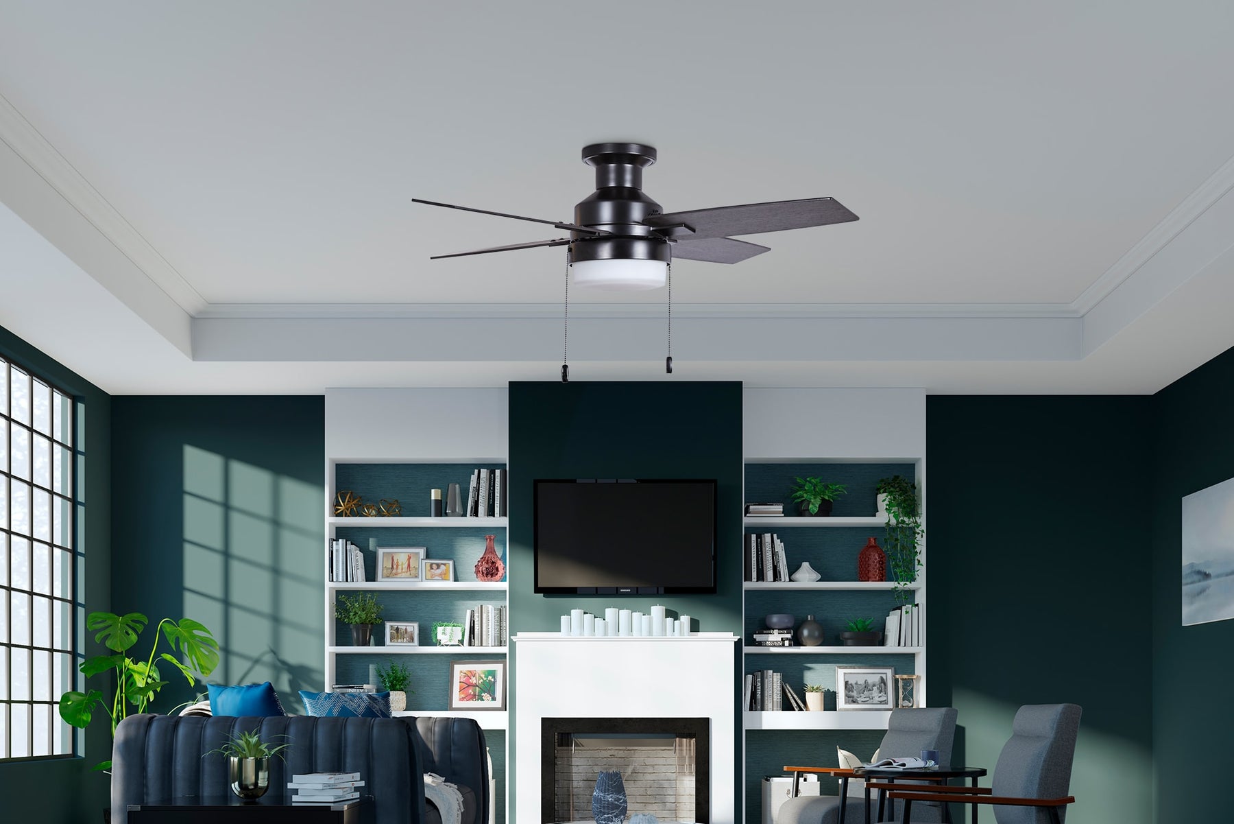 Hunter Port Haven LED 44-in Matte Black Indoor/Outdoor Flush Mount Ceiling Fan with Light Kit, 4-Blade