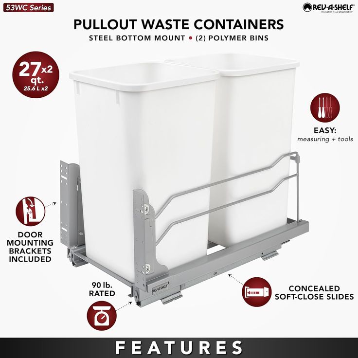 (2) Silver 27 QT waste containers with frame and mounting hardware
