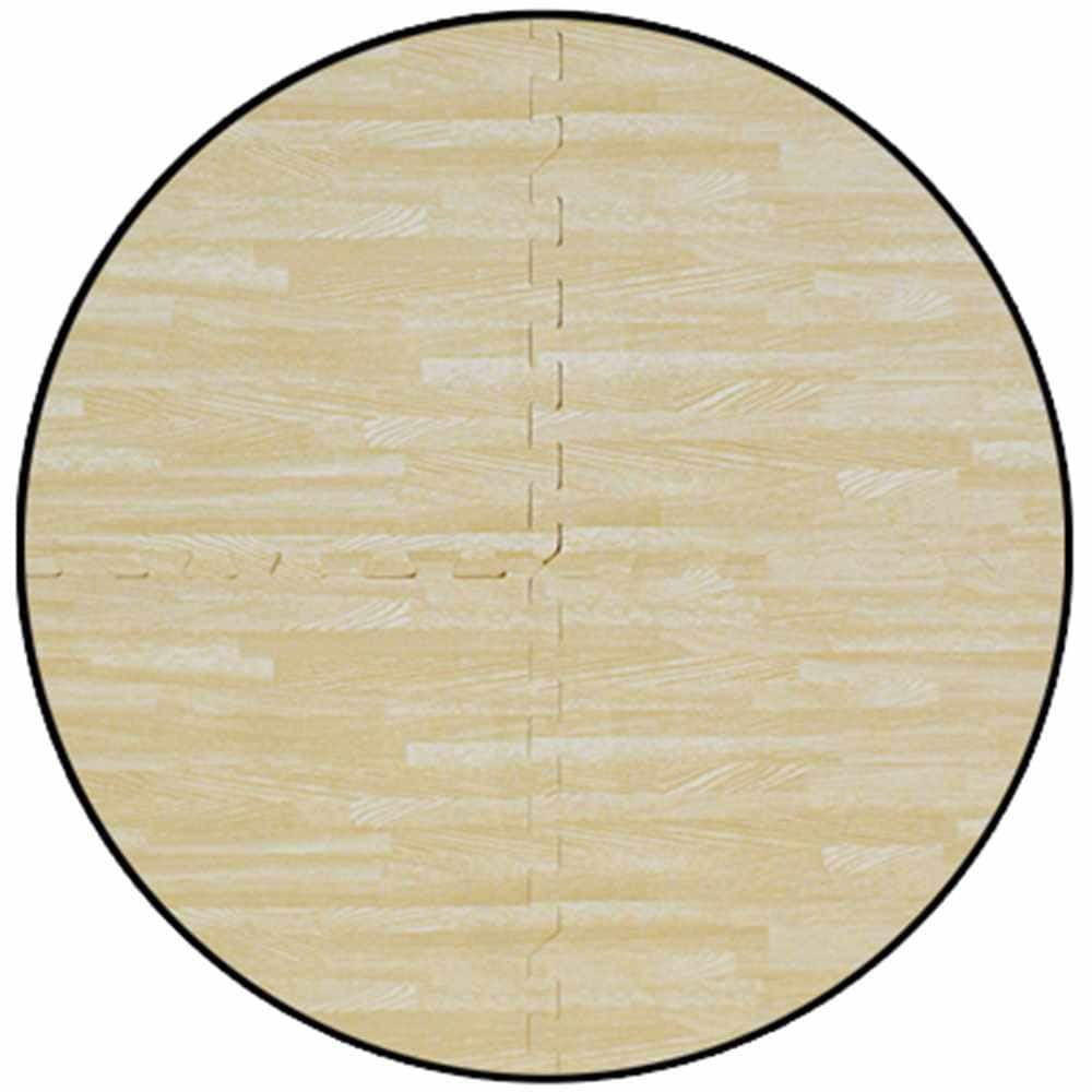 Durable EVA foam tiles with a wood-look finish cushion hard floors and reduce fatigue. The 24 in x 24 in interlocking design installs easily to create a seamless, water-resistant surface ideal for playrooms, home gyms, and workshops. Each pack includes four tiles covering 16 sq. ft.