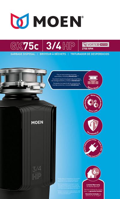 POWERFUL GRINDING: 2,700 RPM, ¾ horsepower Vortex motor provides fast, powerful grinding of tough food scraps and helps reduce jamming