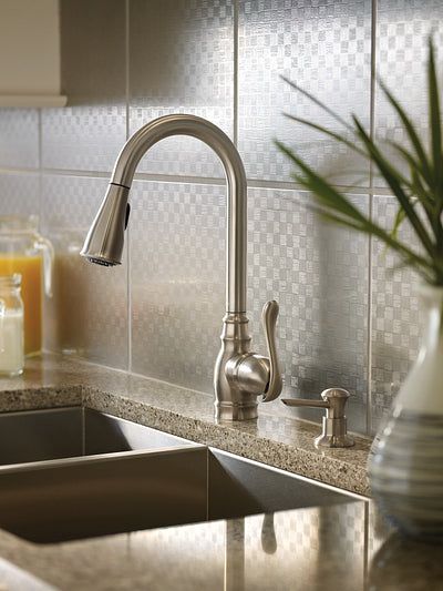 As an industry expert, trust the Moen Anabelle 1-Handle Pull-Down Kitchen Faucet for its proven quality and convenience. With its easy-to-use pull-down feature and durable construction, this faucet allows for efficient cleaning and long-lasting use. Say goodbye to traditional faucets and hello to modern functionality.
