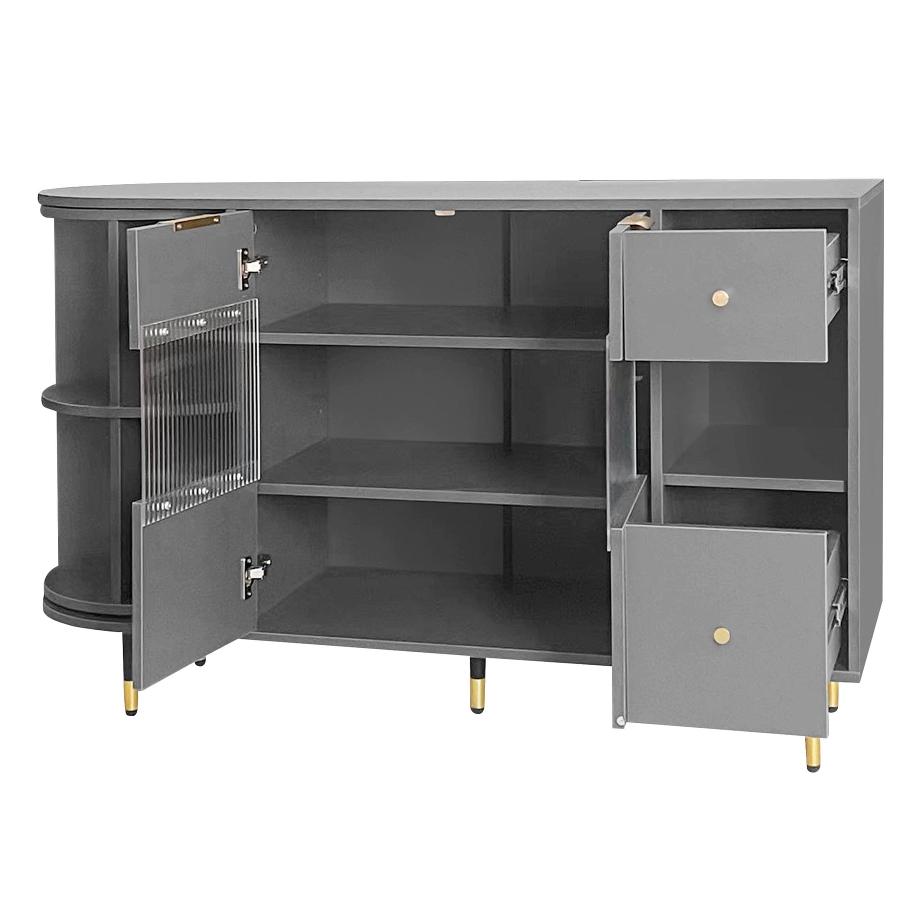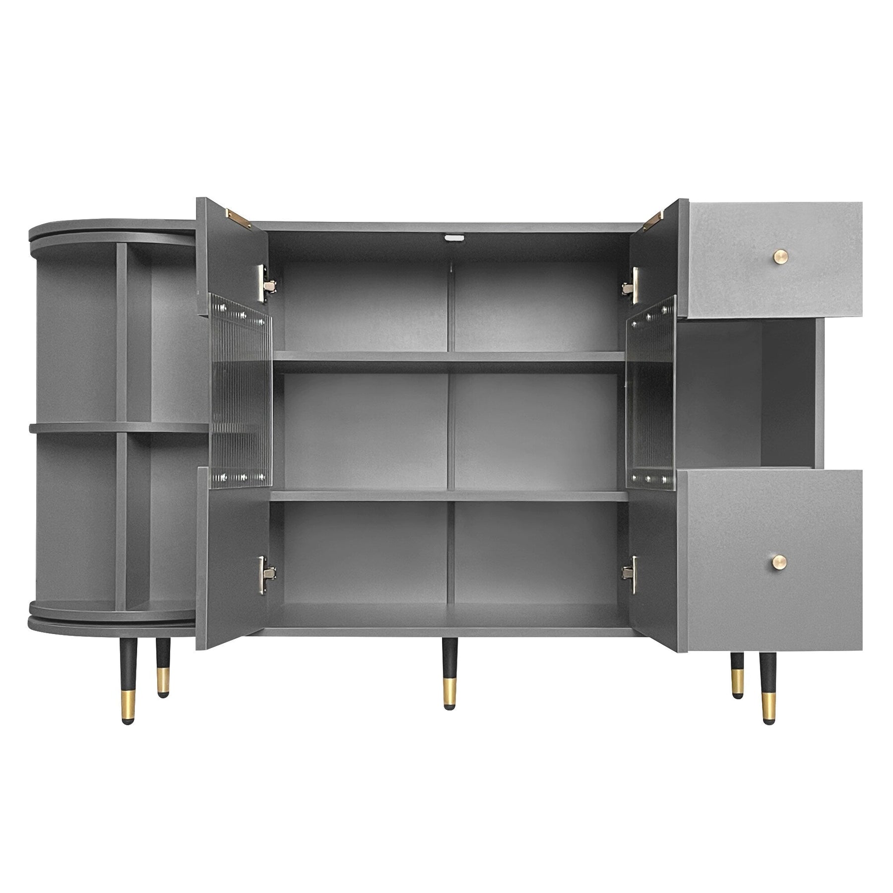 Transform your space with the ModernLuxe Freestanding Utility Storage Cabinet, featuring a sleek, gray MDF finish and an innovative double-layer rotating design. This stylish storage solution boasts versatile usage across various rooms, combining functionality with aesthetic appeal through its tempered Changhong glass and durable construction.