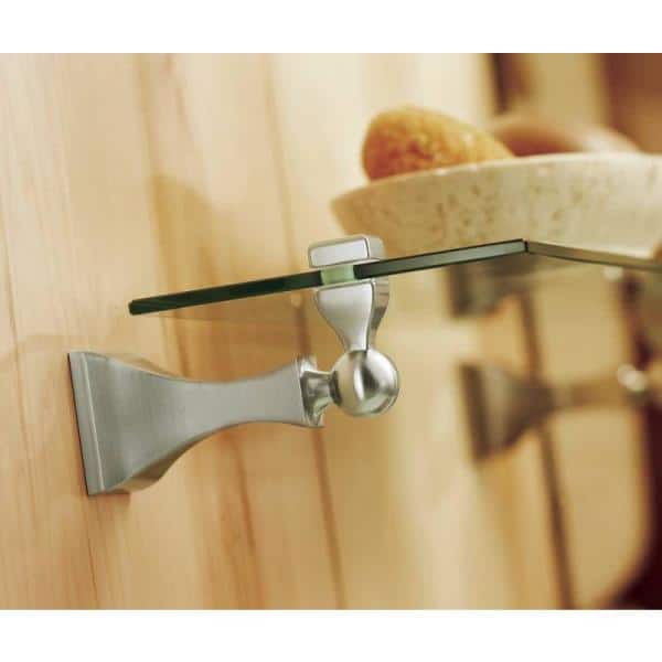 Add streamlined storage with the MOEN Retreat wall-mounted glass shelf. The clear tempered glass offers a clean, spacious look, while the brushed nickel brackets feature concealed screws for a tidy finish. Ideal for bathrooms needing extra organization without sacrificing style.