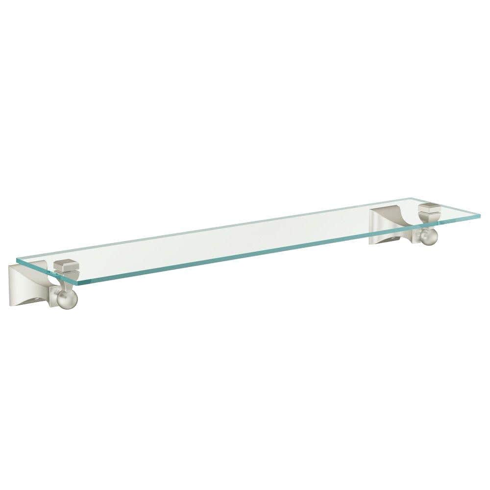 MOEN Retreat 22 in. Wall-Mount Clear Tempered Glass Shelf in Brushed Nickel (5.9 in. D x 2.6 in. H)