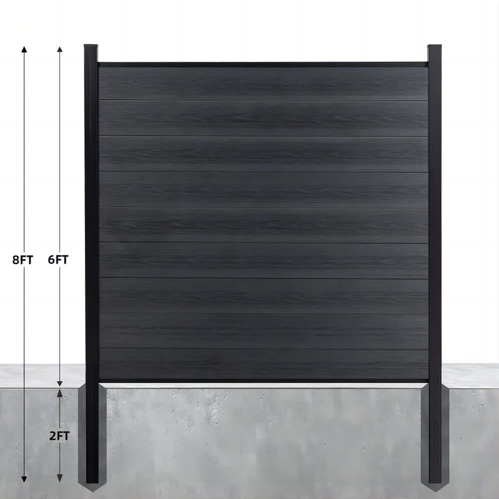 mondaria 8 ft. H x 6 ft. W Black Composite Horizontal Fence Panel (9-Pack) with 2 Channels