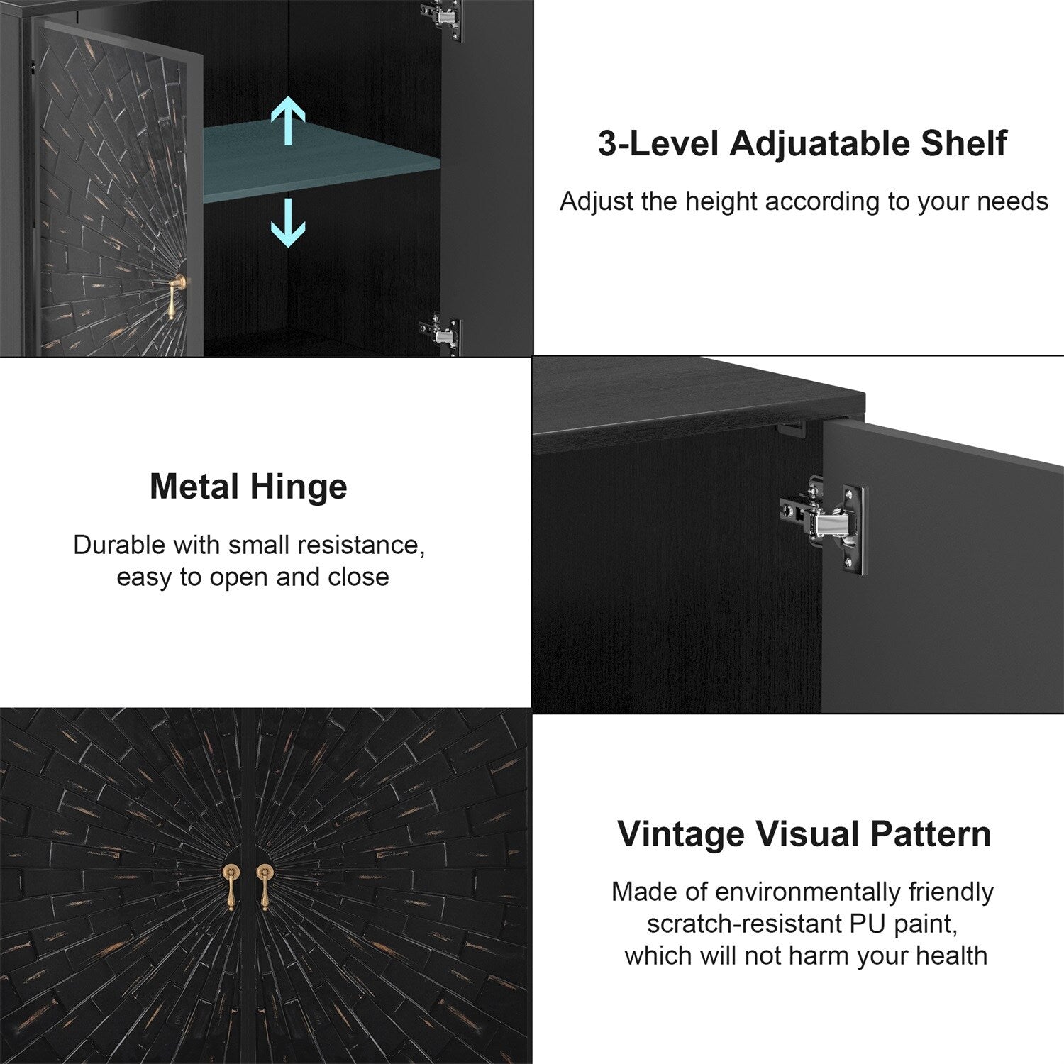 Ample Storage: Includes adjustable shelves inside for personalized organization.
