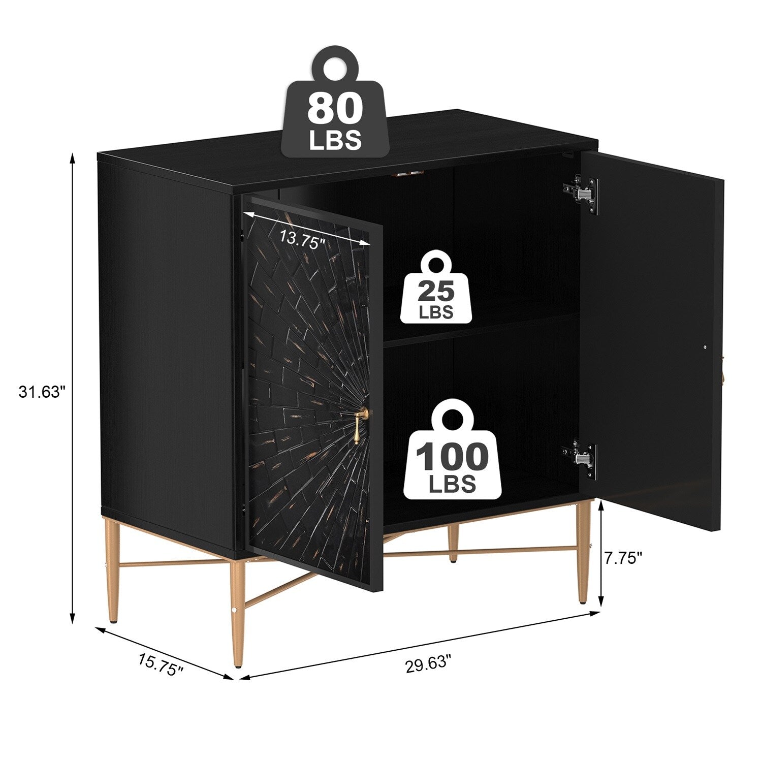 Q: How much weight can the cabinet support? A: The robust design supports up to 100 lbs, with the metal frame and legs providing enhanced stability.
